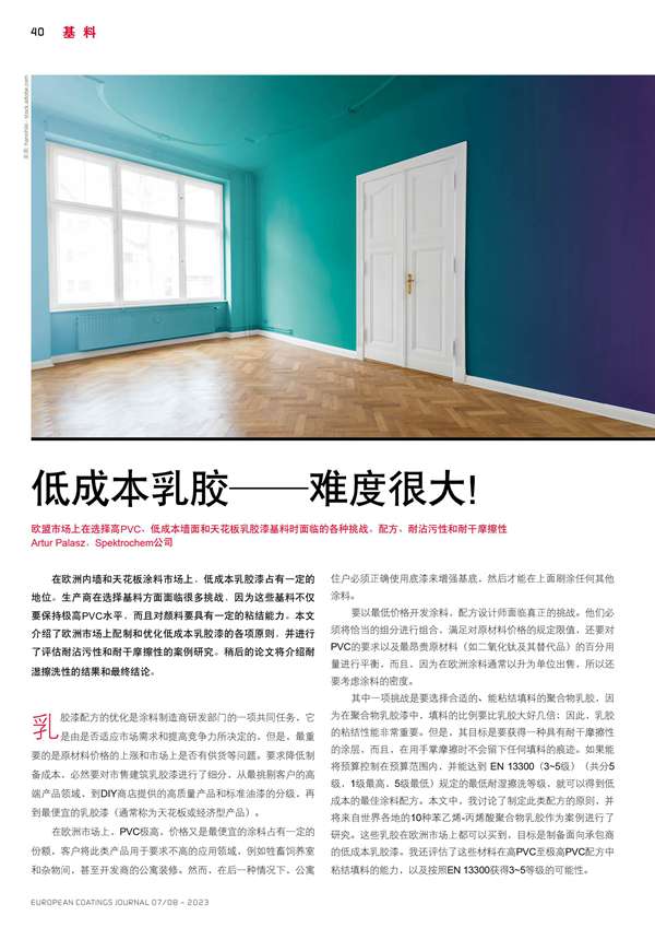 歐盟市場上在選擇高PVC、低成本墻面和天花板乳膠漆基料時面臨的各種挑戰