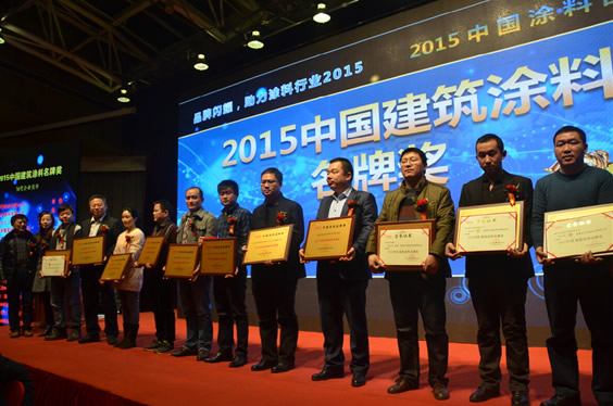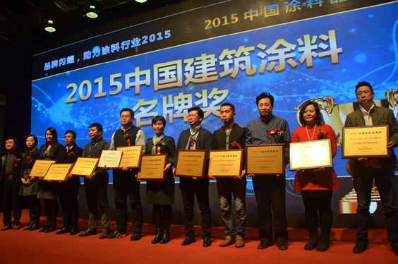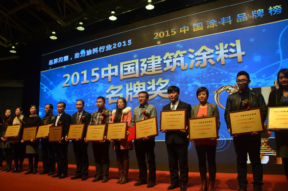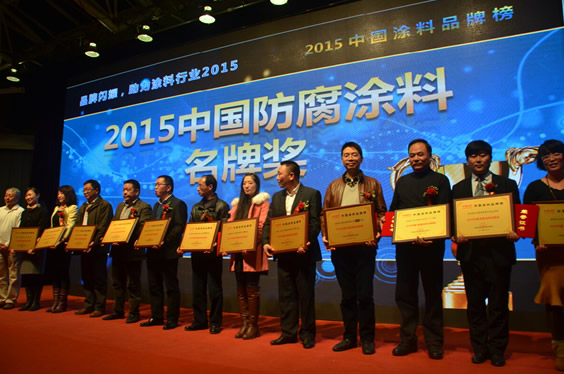 2015年12月18日晚,在北京舉辦的“2015中國涂料品牌榜頒獎活動”中,“2015中國涂料品牌榜”隆重揭曉。共評出中國建筑涂料名牌獎、中國防腐涂料名牌獎、中國木器涂料名牌獎、中國汽車涂料名牌獎、中國藝術涂料名牌獎、中國涂料裝備名牌獎、中國涂料顏填料名牌獎、中國涂料原輔材料名牌獎、中國涂料行業發展潛力企業獎、中國涂料行業精英獎、中國涂料行業伯樂獎11類獎項,上榜品牌、企業及個人348個。