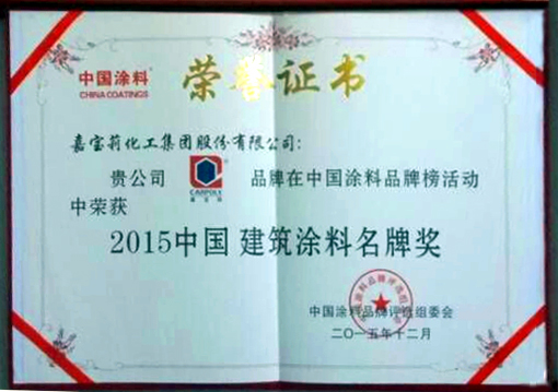 12月18日,2015中國(guó)水性工業(yè)涂料發(fā)展研討會(huì)在京召開(kāi)。會(huì)議旨在順應(yīng)國(guó)家系列環(huán)保法規(guī),加快涂料行業(yè)的轉(zhuǎn)型升級(jí)。會(huì)議同期還舉辦了2015中國(guó)涂料品牌榜頒獎(jiǎng)活動(dòng),嘉寶莉是獲獎(jiǎng)最多的企業(yè)之一,先后被授予為2015“中國(guó)藝術(shù)涂料名牌獎(jiǎng)”、“中國(guó)建筑涂料名牌獎(jiǎng)”、“中國(guó)木器涂料名牌獎(jiǎng)”、“中國(guó)防腐涂料名牌獎(jiǎng)”,嘉寶莉董事長(zhǎng)仇東航還榮獲了“2015中國(guó)涂料行業(yè)精英獎(jiǎng)”。