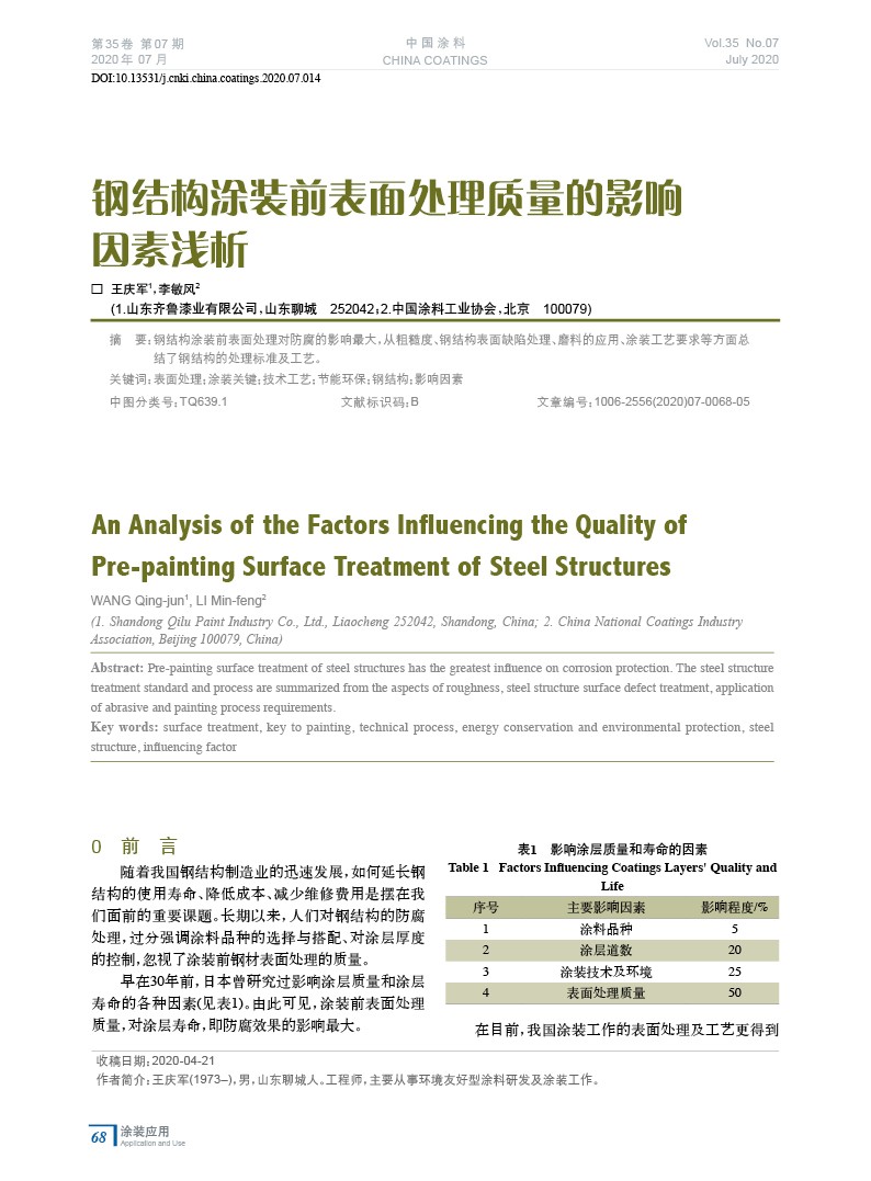 本文系作者@王慶軍,李敏風 授權中國涂料網發表,并經中國涂料網編輯,未經允許不得轉載,如需轉載請聯系chinacoatingnet@vip.163.com