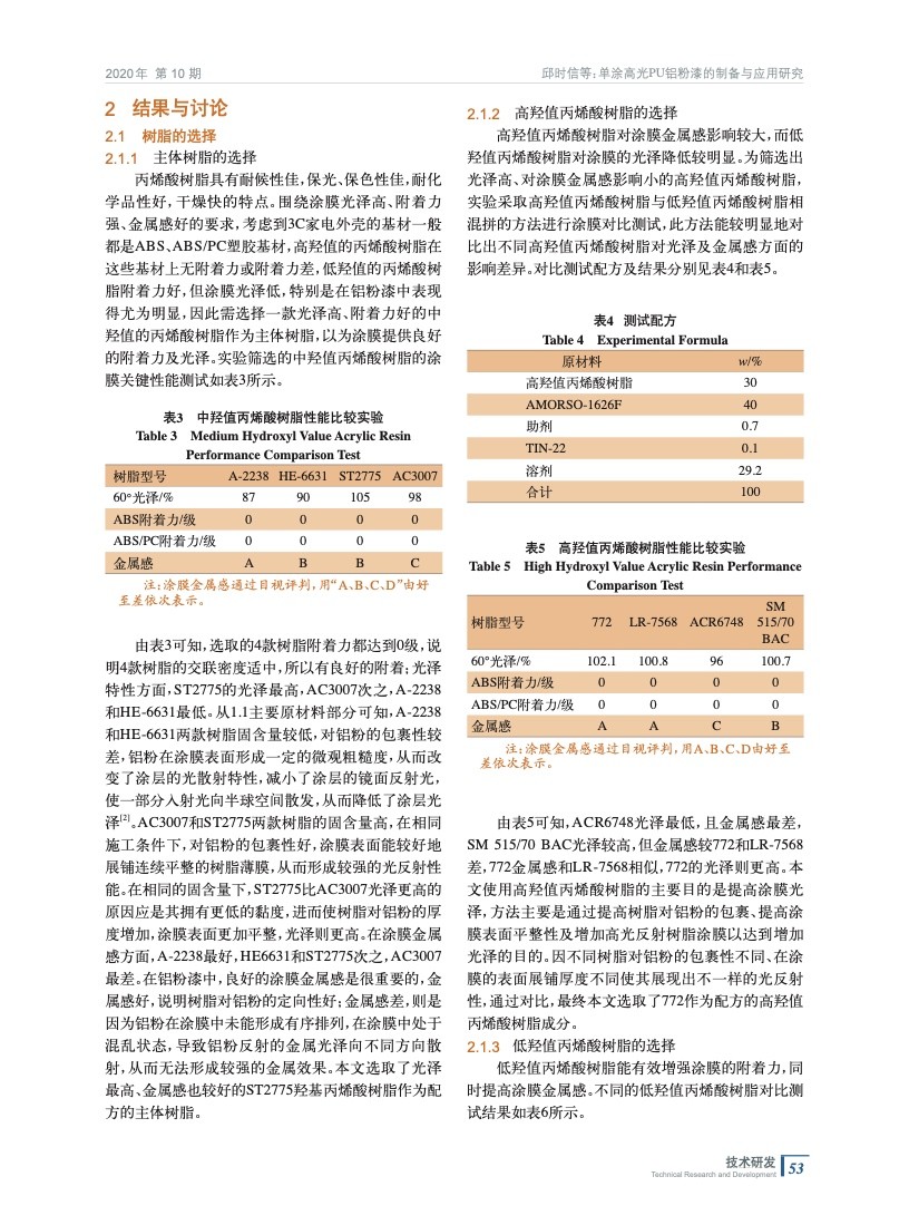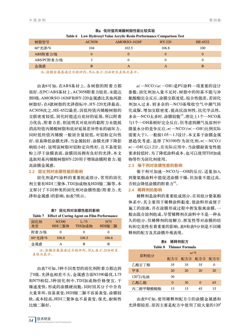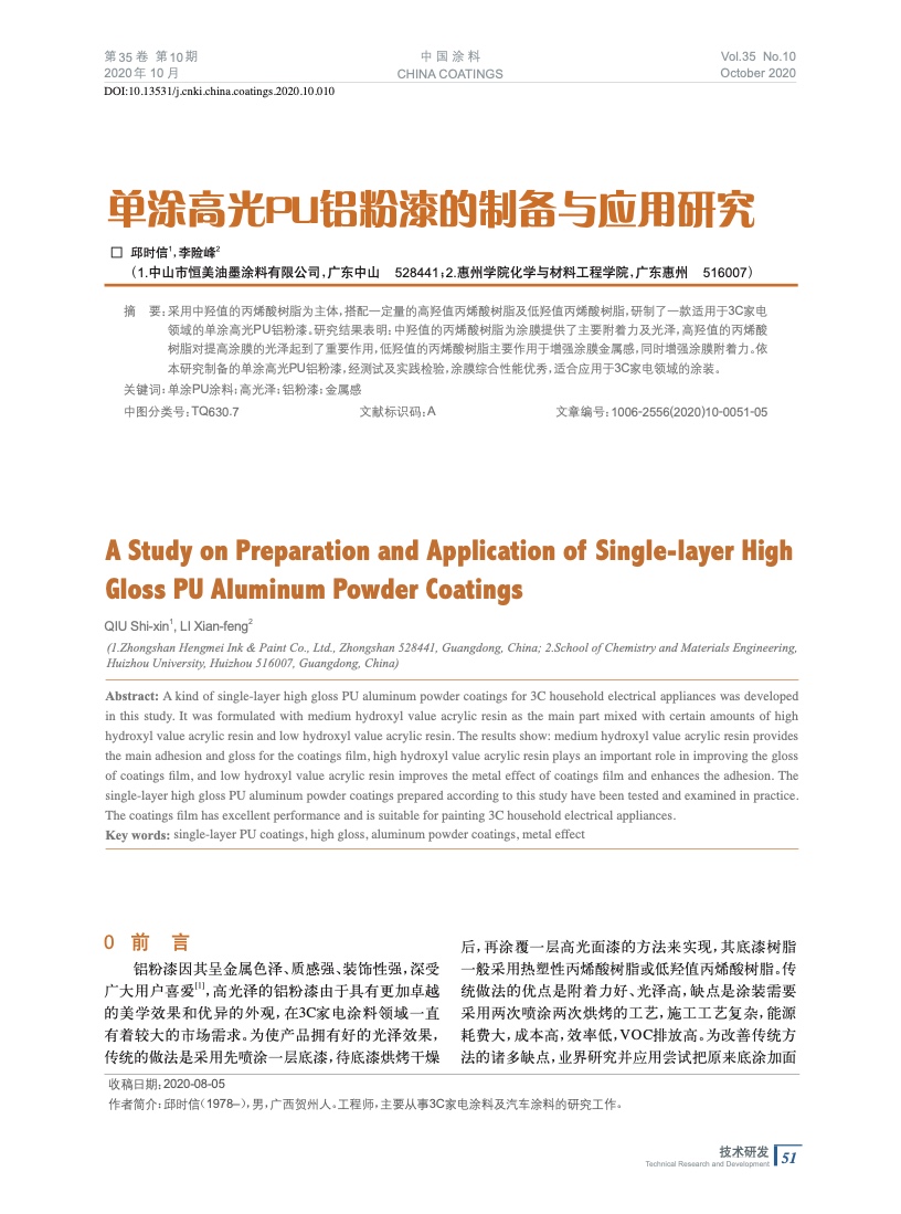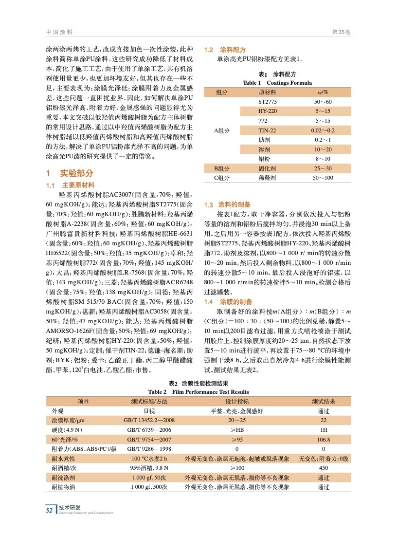 單涂高光PU鋁粉漆的制備與應(yīng)用研究