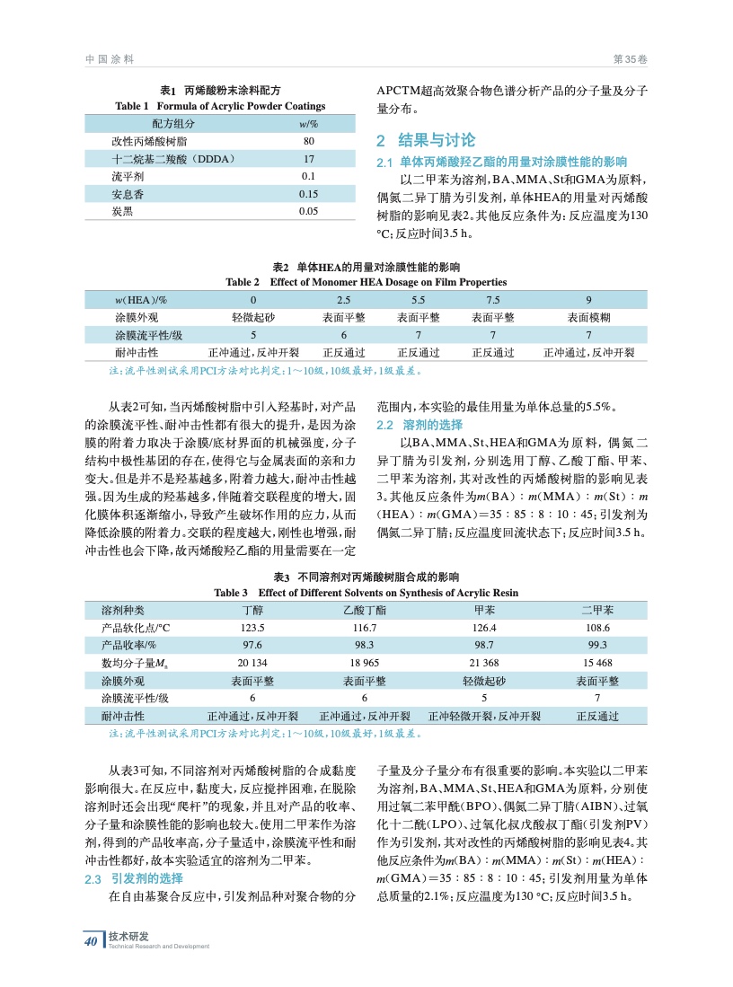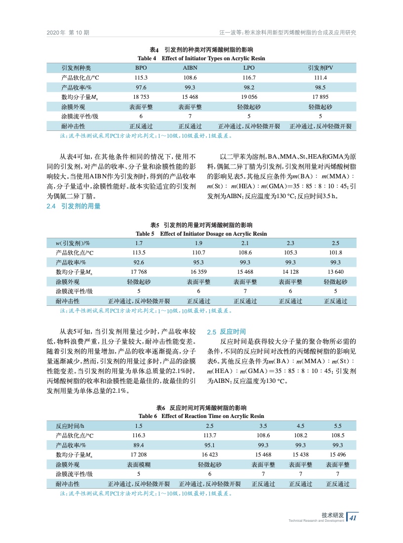 粉末涂料用新型丙烯酸樹脂的合成及應(yīng)用研究