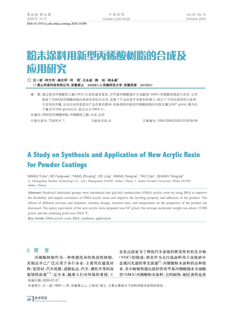 本文系作者@汪一波,柯方偉,楊志萍,何 領(lǐng),王永壘,陶 燦,商永嘉 授權(quán)中國涂料網(wǎng)發(fā)表,并經(jīng)中國涂料網(wǎng)編輯,未經(jīng)允許不得轉(zhuǎn)載,如需轉(zhuǎn)載請聯(lián)系chinacoatingnet@vip.163.com