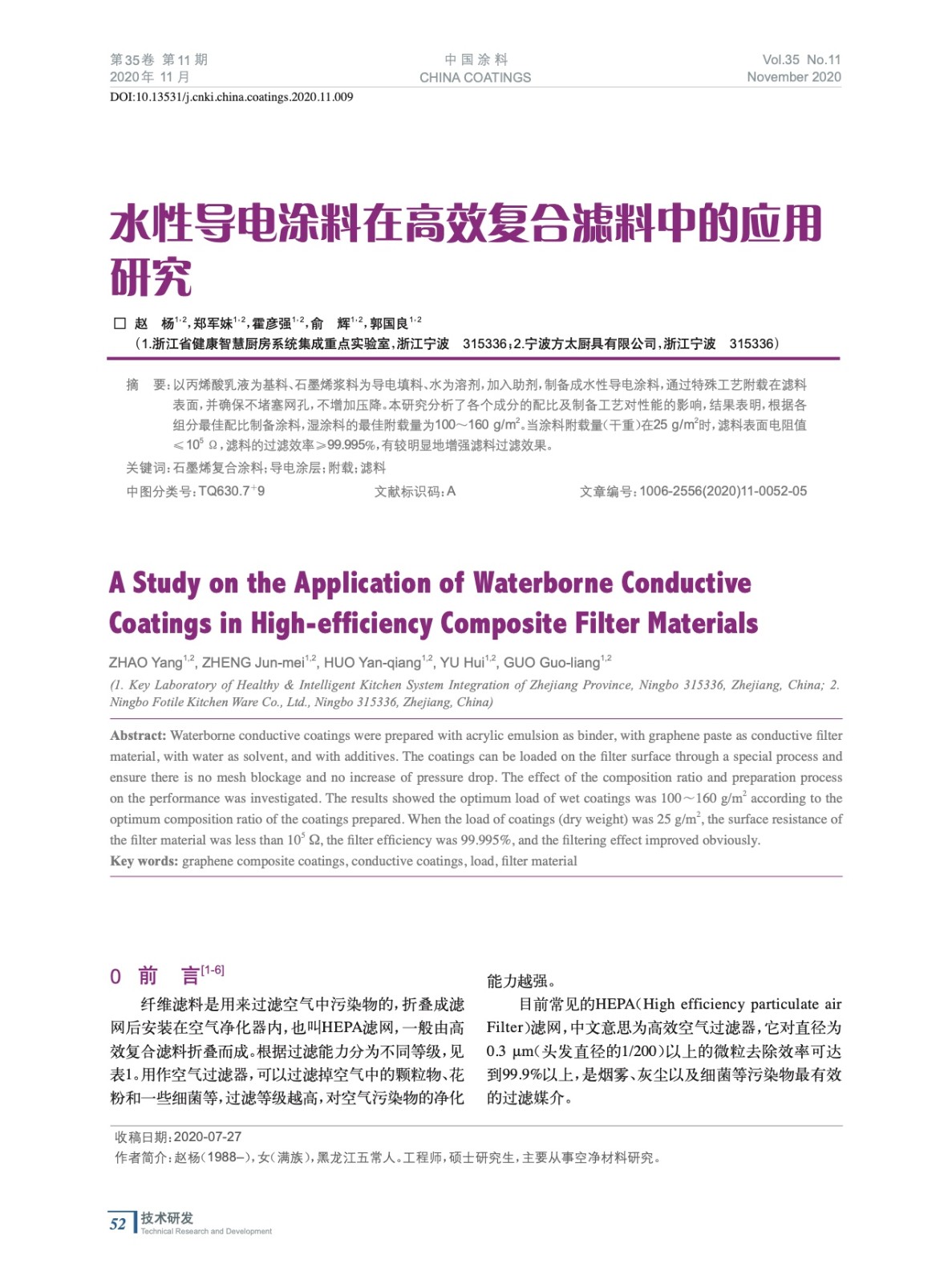 水性導(dǎo)電涂料在高效復(fù)合濾料中的應(yīng)用研究