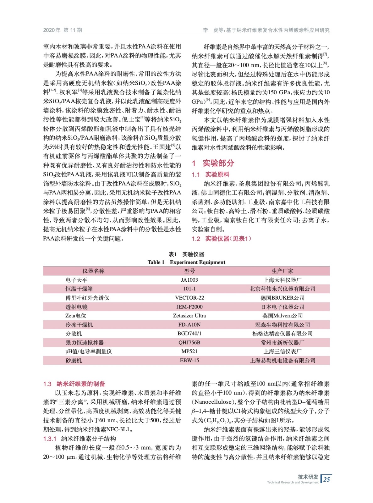 基于納米纖維素復合水性丙烯酸涂料應用研究