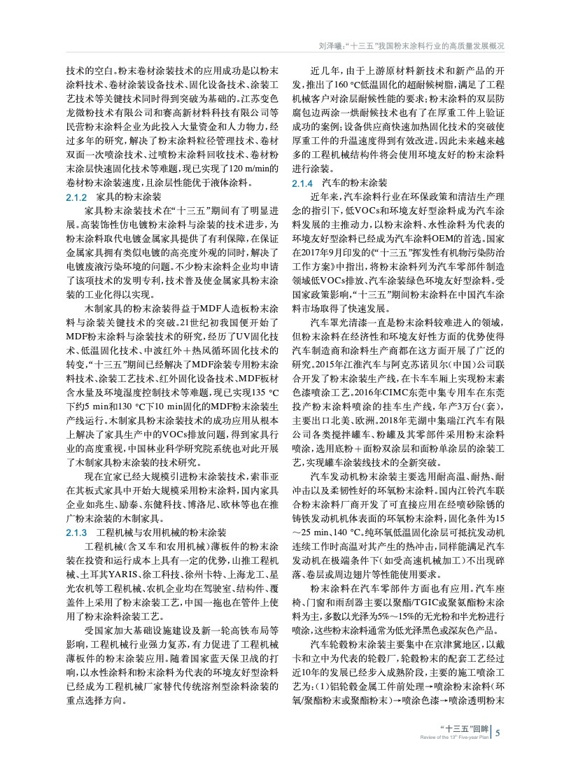 闡述了“十三五”期間我國涂料工業經濟運行情況和粉末涂料的行業運行情況,分析了5年間粉末涂料及其原材料和制粉設備的技術進步,提出粉末涂料行業高質量發展需要解決的短板問題,對行業發展具有一定的指導意義。