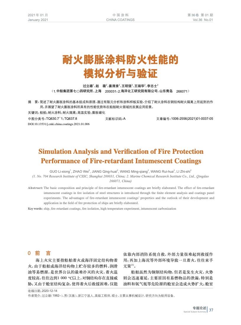 本文系作者@過立雄,趙 薇,姜清淮,王明強,王瑞華,李志士 授權中國涂料網發表,并經中國涂料網編輯,未經允許不得轉載,如需轉載請聯系chinacoatingnet@vip.163.com