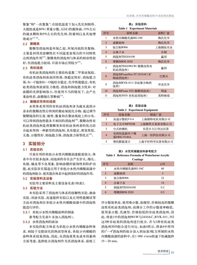 水性丙烯酸涂料中消泡劑的篩選