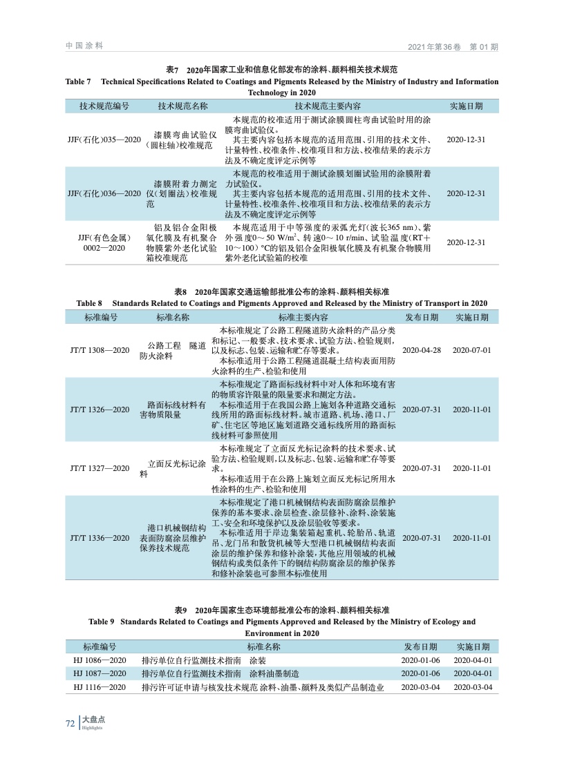 2020年涂料、顏料行業主要相關標準匯總