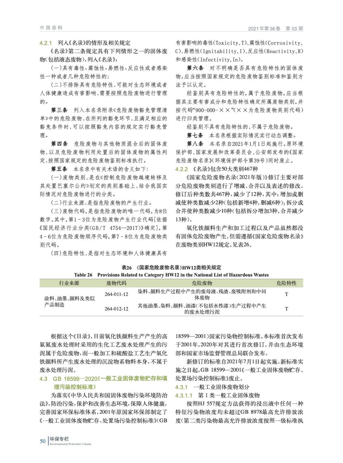 重點闡述了我國氧化鐵顏料生產和加工企業固體廢物處置應遵循的5部環境保護法規和標準所含項目和限值要求等,并為氧化鐵生產企業取得排污許可證后如何進行常態化管理指明了方向。