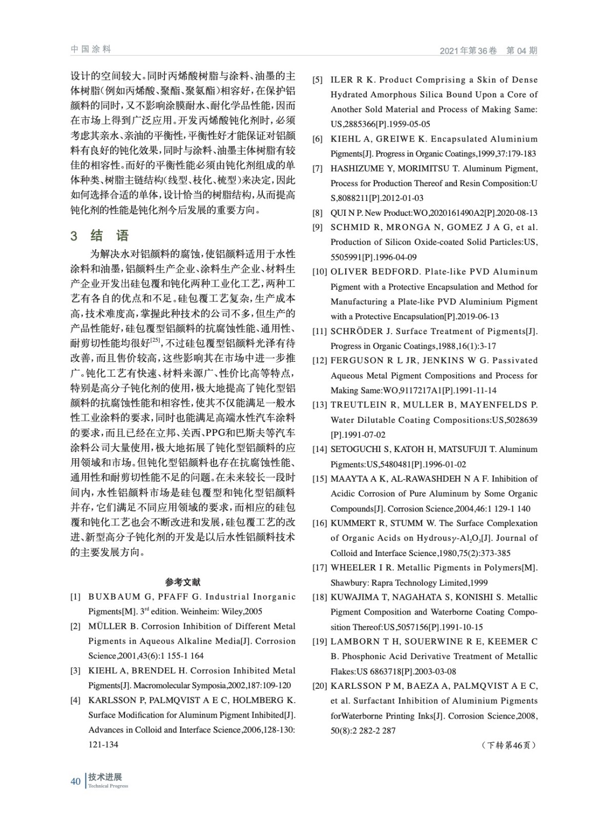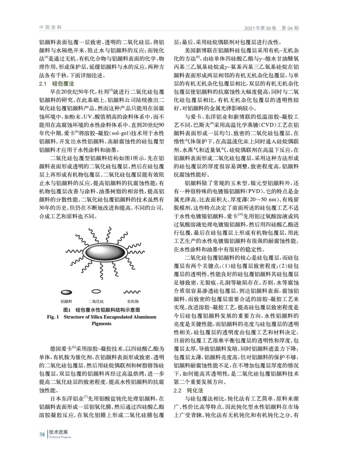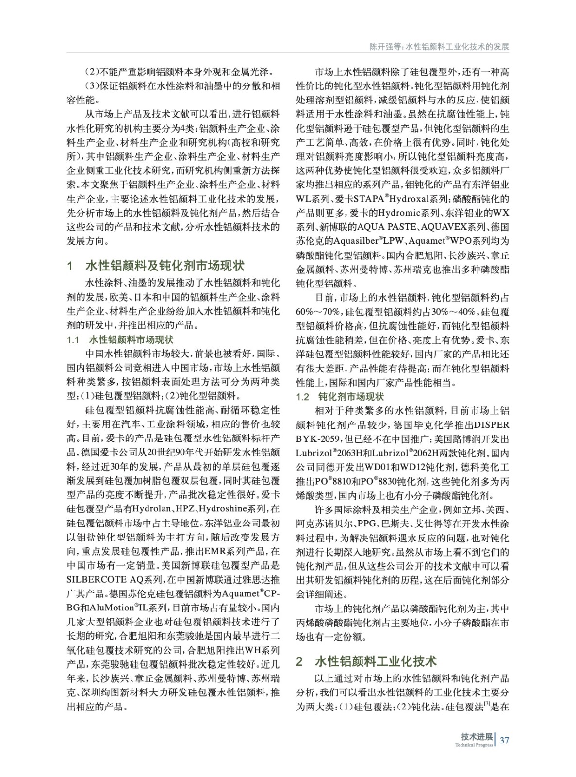 根據鋁顏料生產企業、涂料生產企業、材料生產企業的產品和技術,綜述了水性鋁顏料工業化技術的發展脈絡,介紹了硅包覆和鈍化工藝的發展及以后水性鋁顏料技術的發展方向。