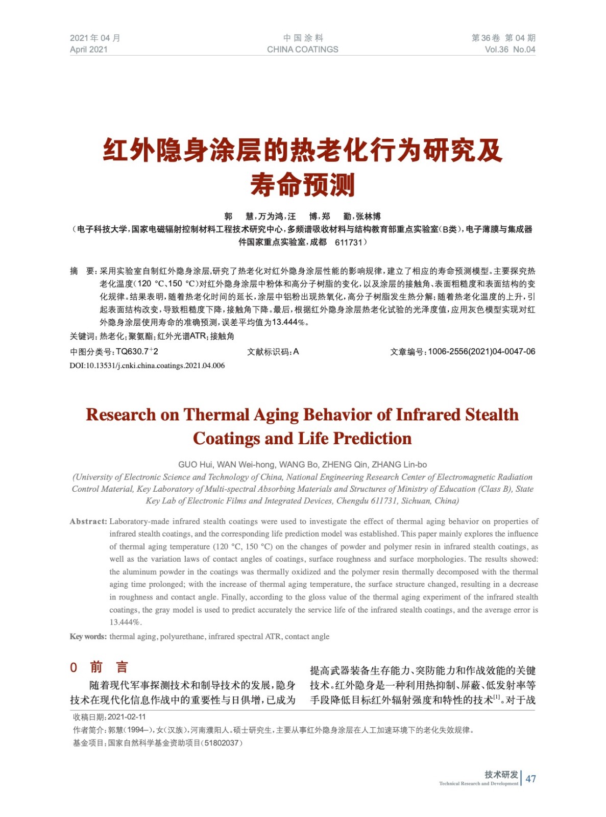 紅外隱身涂層的熱老化行為研究及壽命預測