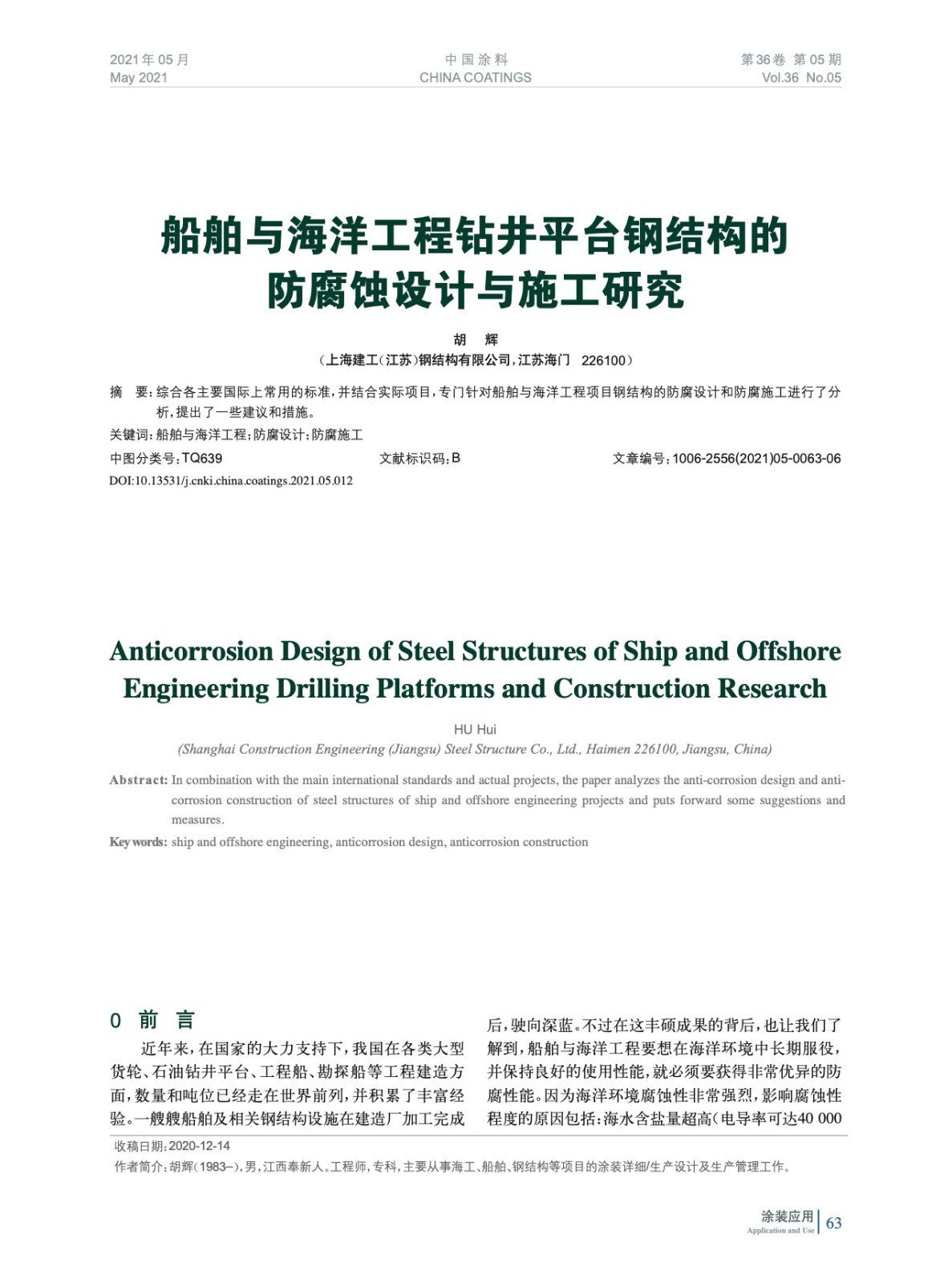 船舶與海洋工程鉆井平臺鋼結構的防腐蝕設計與施工研究