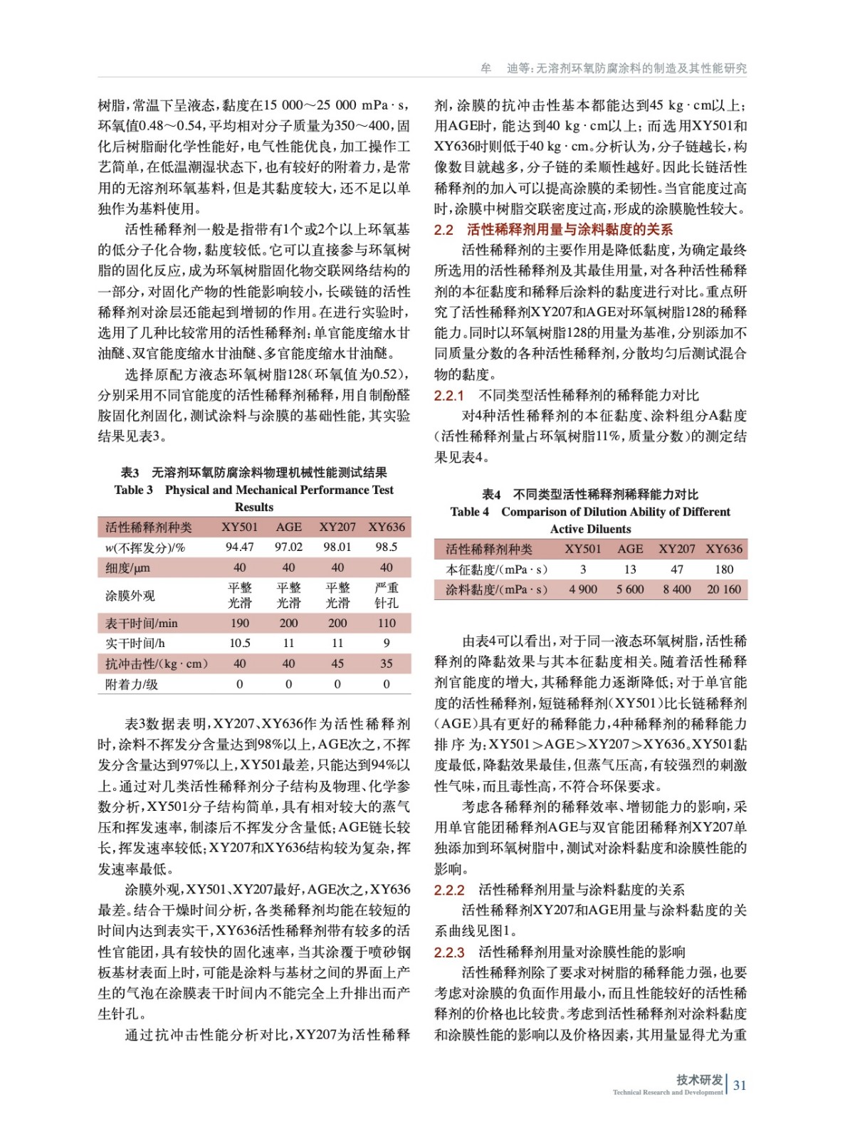 無溶劑環(huán)氧防腐涂料的制造及其性能研究