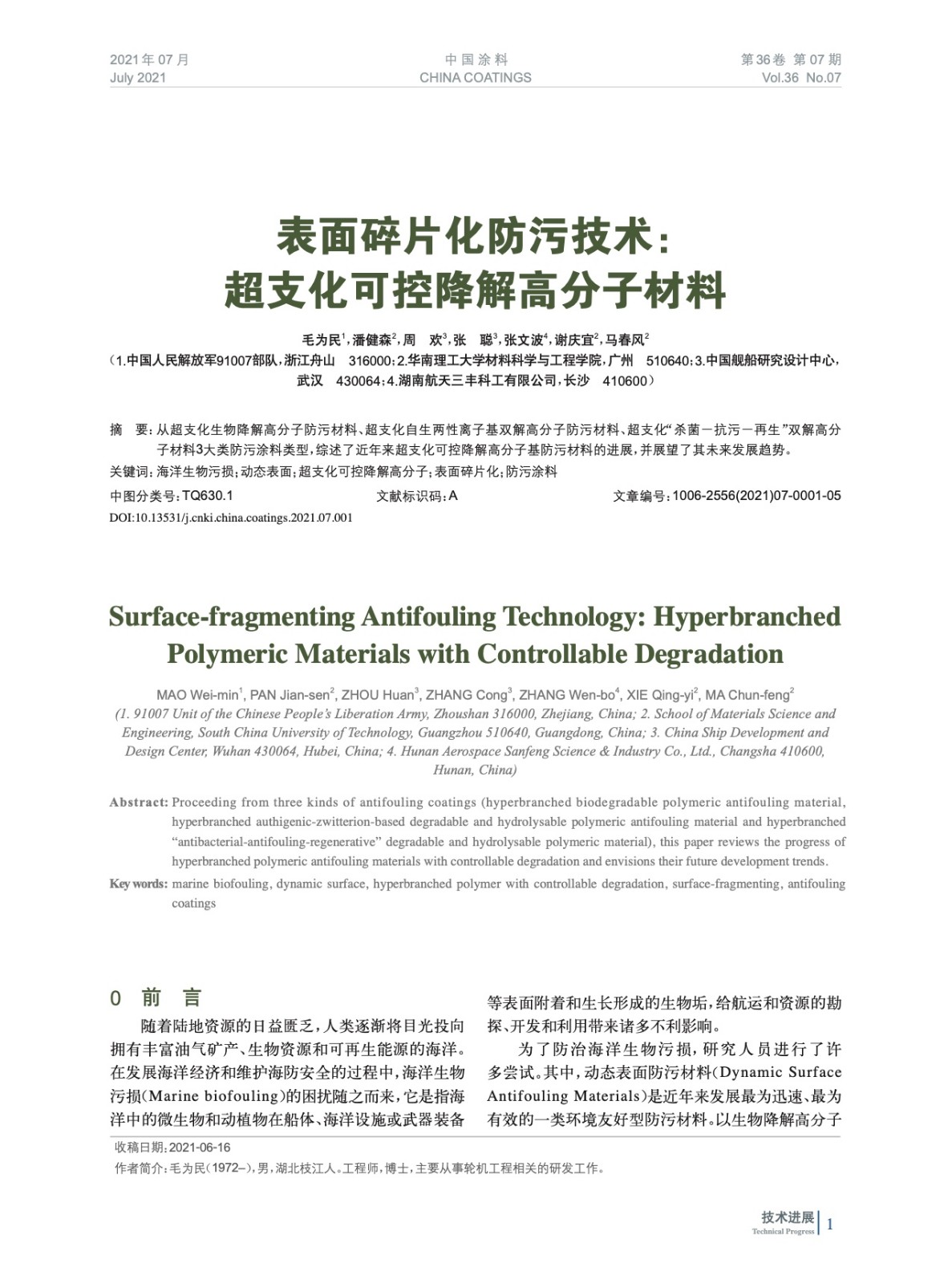 發表于2021-08-30 14:19:42| 次閱讀| 來源中國涂料| 作者毛為民,潘健森,周 歡,張 聰,張文波,謝慶宜,馬春風