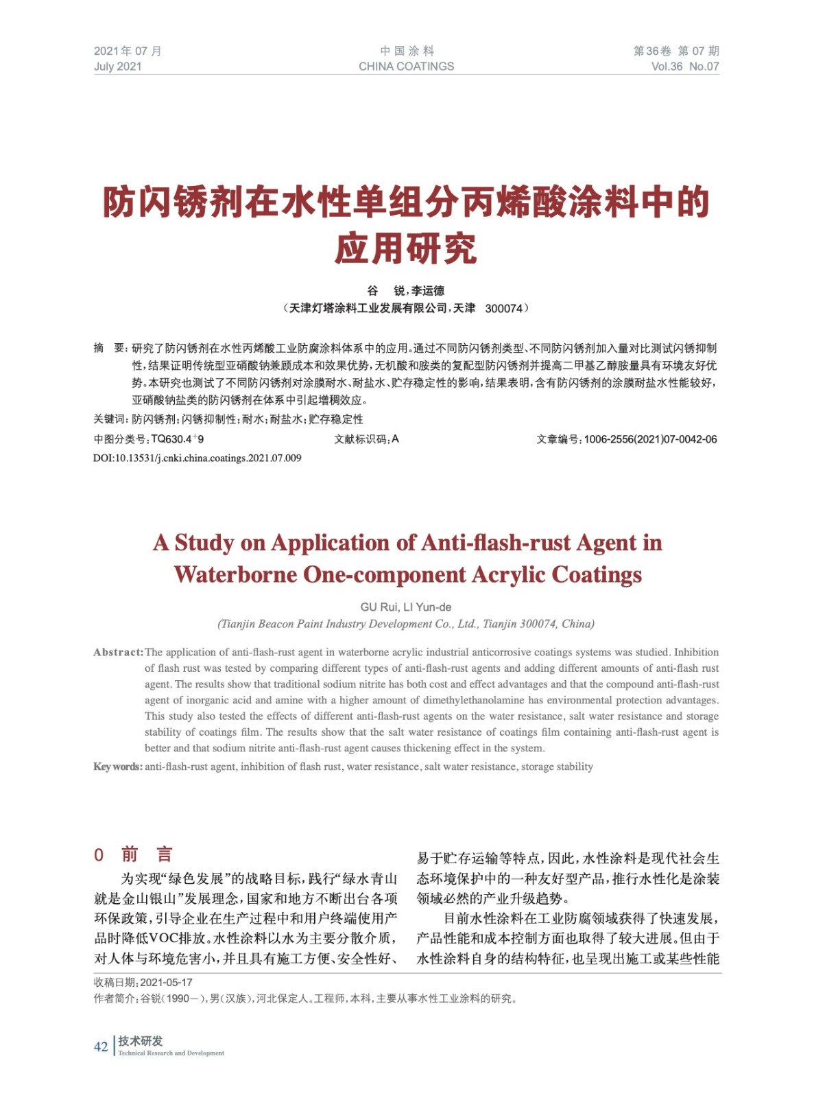 本文系作者@谷 銳,李運德 授權中國涂料網發表,并經中國涂料網編輯,未經允許不得轉載,如需轉載請聯系chinacoatingnet@vip.163.com