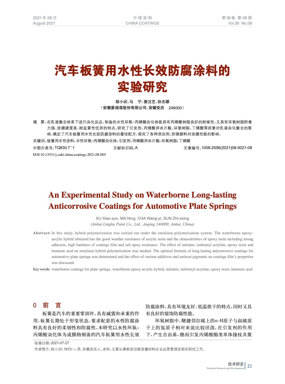 發(fā)表于2021-09-26 15:38:57| 次閱讀| 來源中國涂料| 作者徐小訓,馬 寧,查汪藝,孫志雄