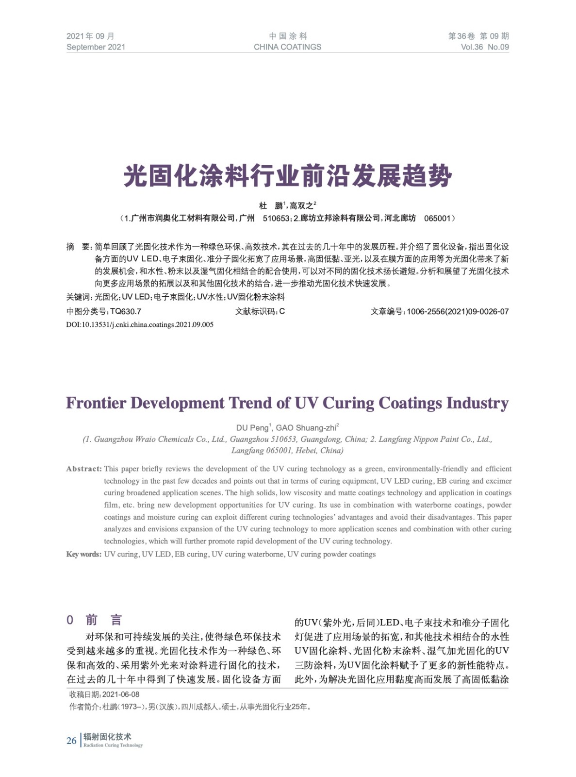本文系作者@杜 鵬,高雙之 授權中國涂料網發表,并經中國涂料網編輯,未經允許不得轉載,如需轉載請聯系chinacoatingnet@vip.163.com