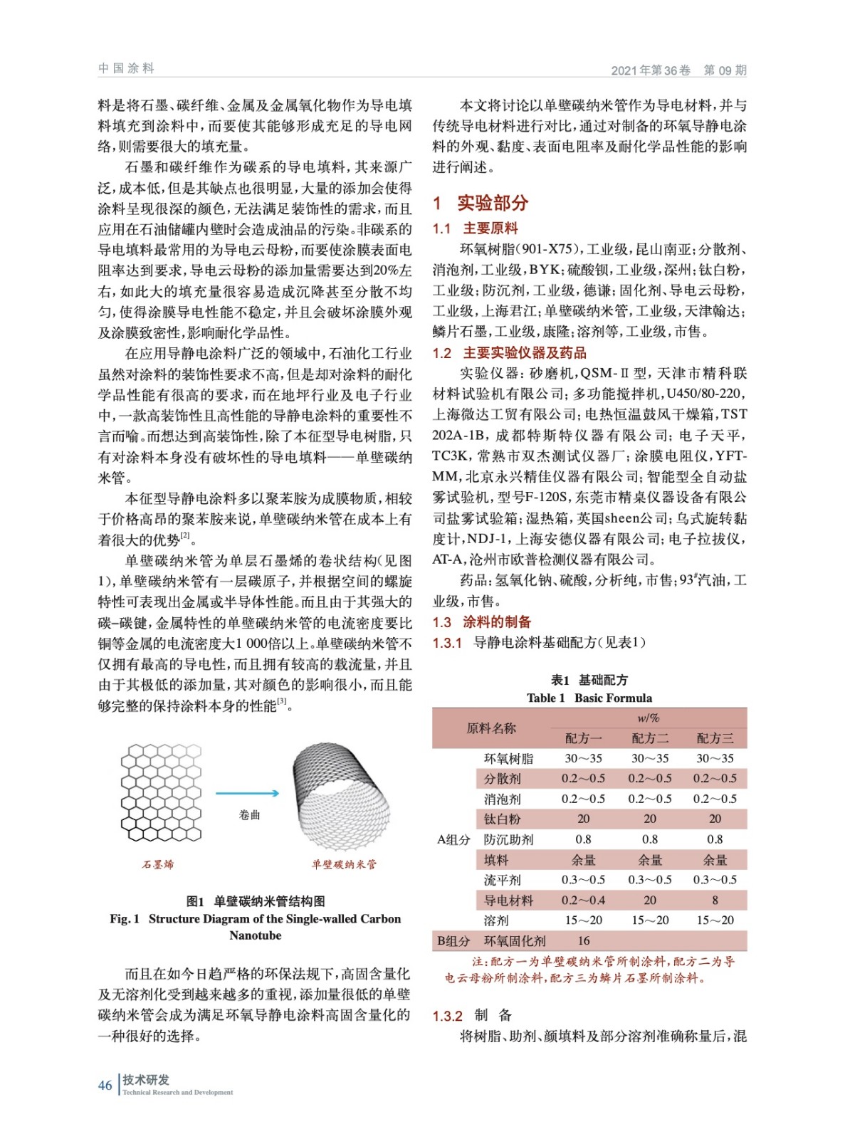 單壁碳納米管在環(huán)氧導靜電涂料面漆中的應用