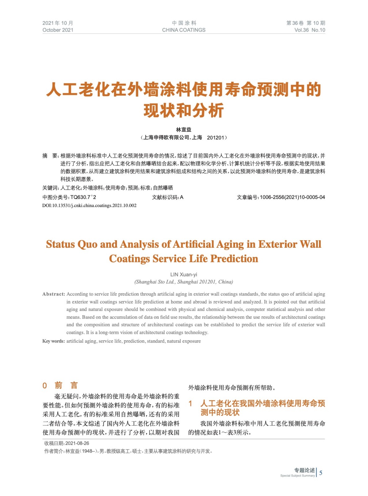人工老化在外墻涂料使用壽命預(yù)測中的現(xiàn)狀和分析