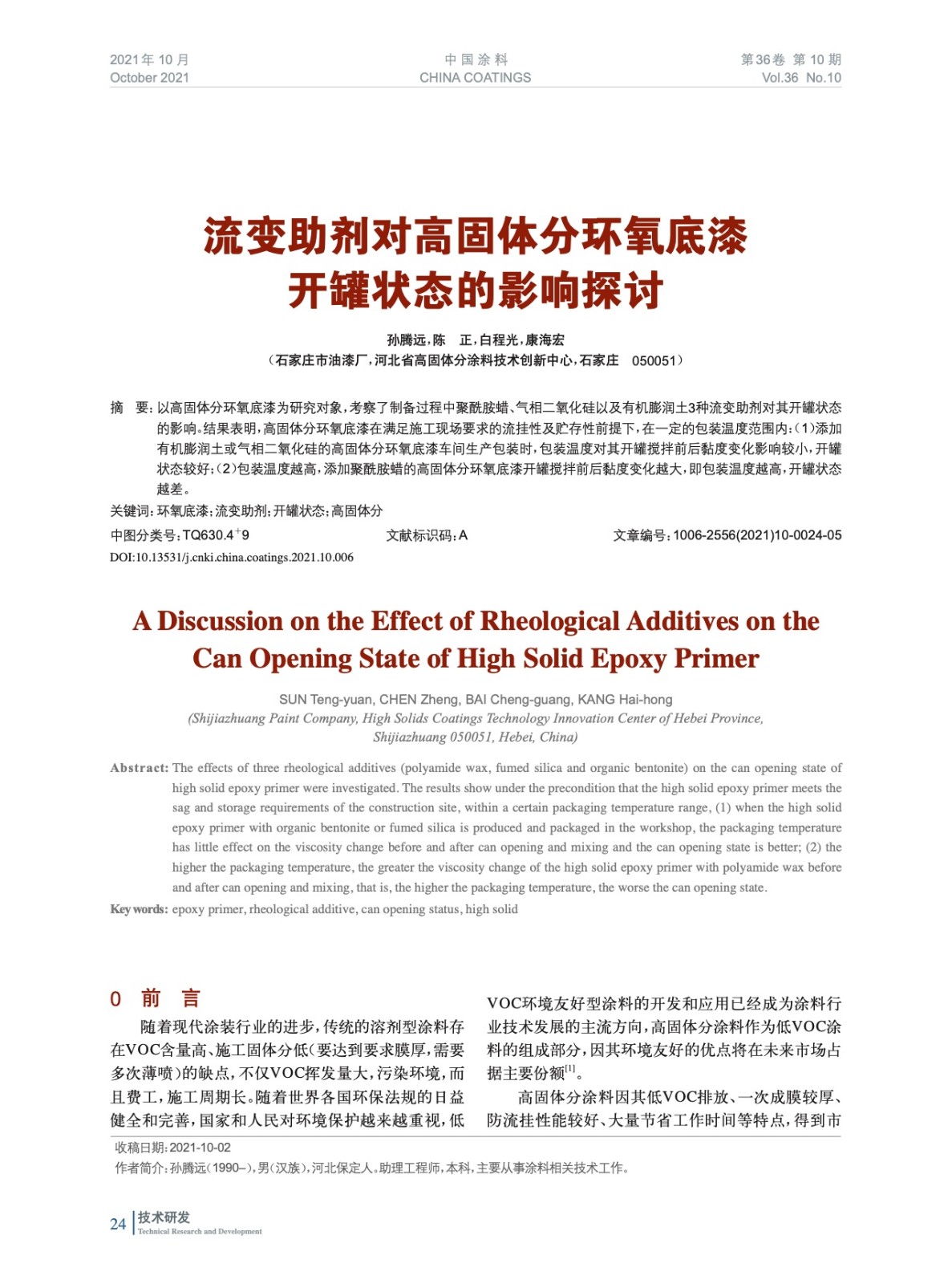 流變助劑對高固體分環(huán)氧底漆開罐狀態(tài)的影響探討