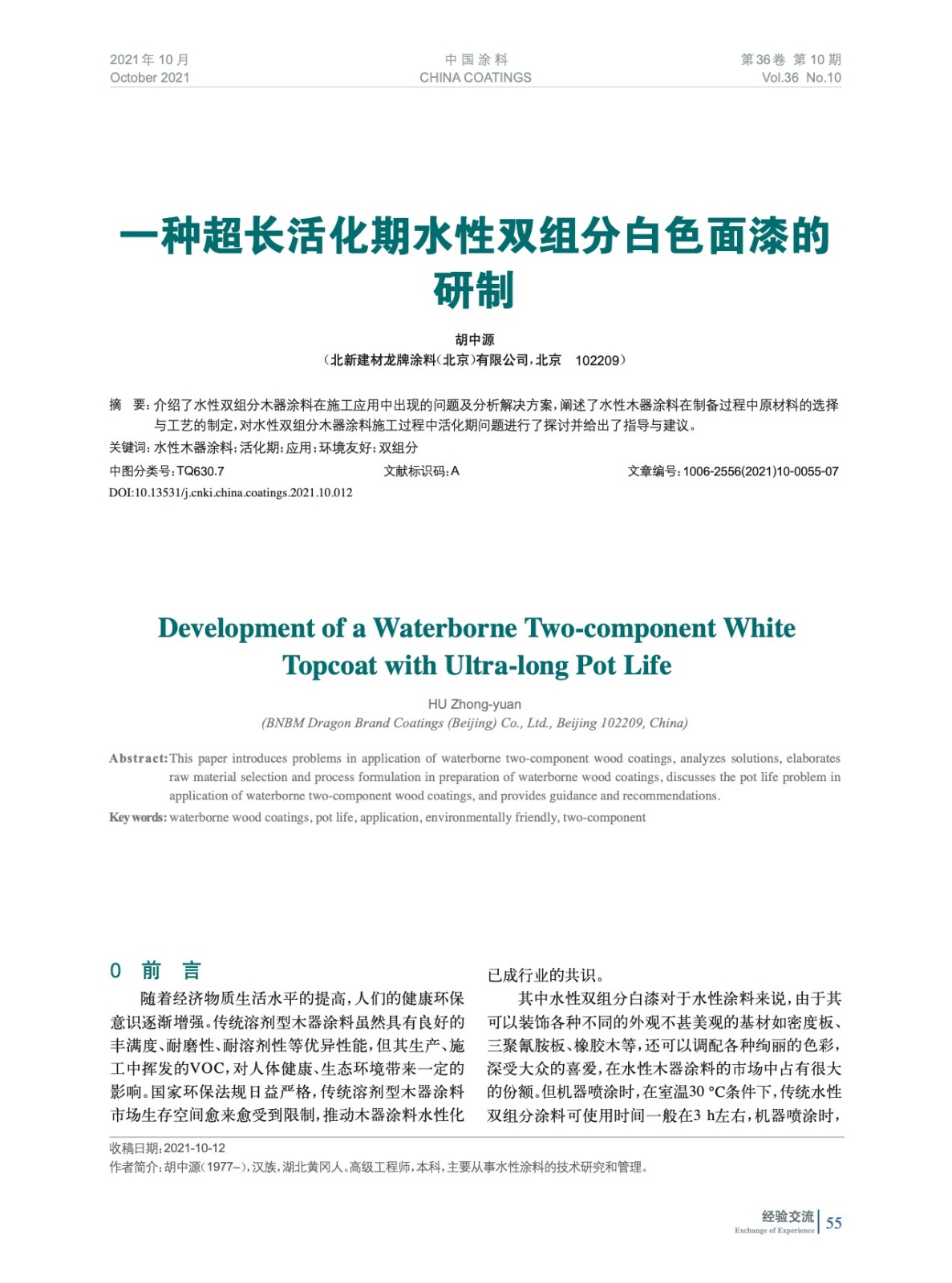 介紹了水性雙組分木器涂料在施工應用中出現的問題及分析解決方案,闡述了水性木器涂料在制備過程中原材料的選擇與工藝的制定,對水性雙組分木器涂料施工過程中活化期問題進行了探討并給出了指導與建議。