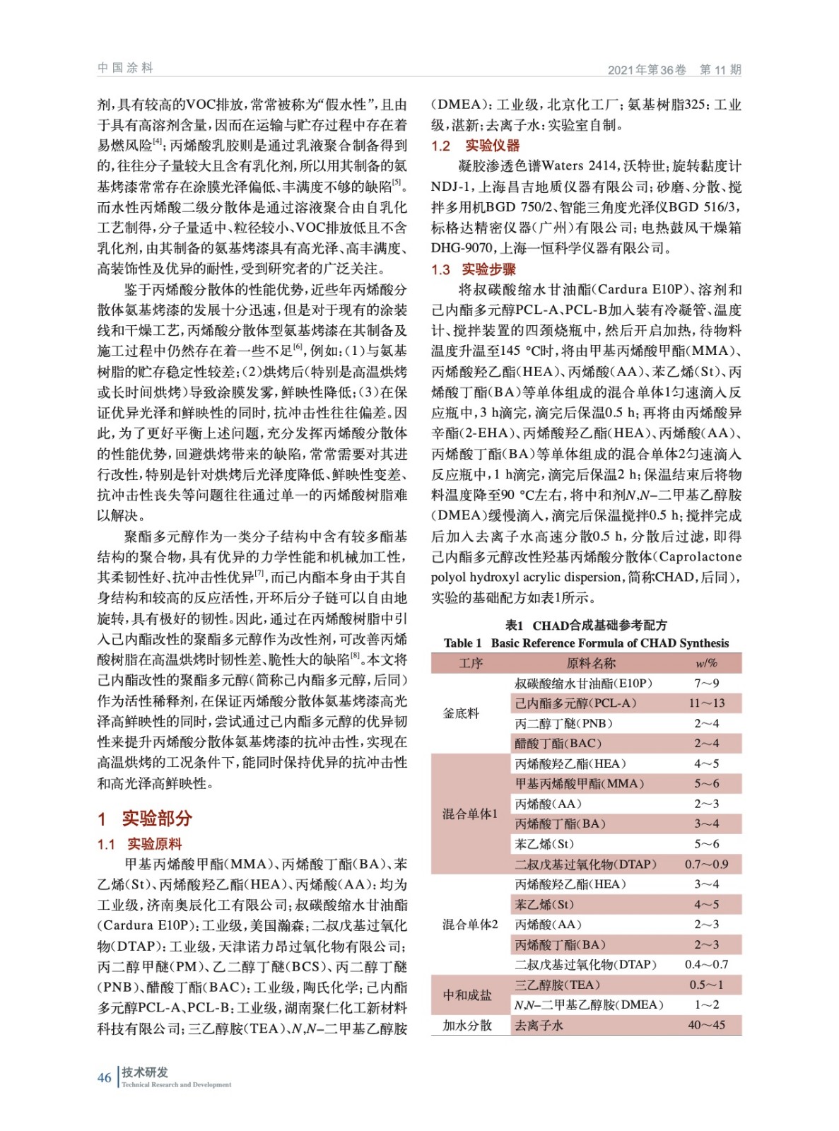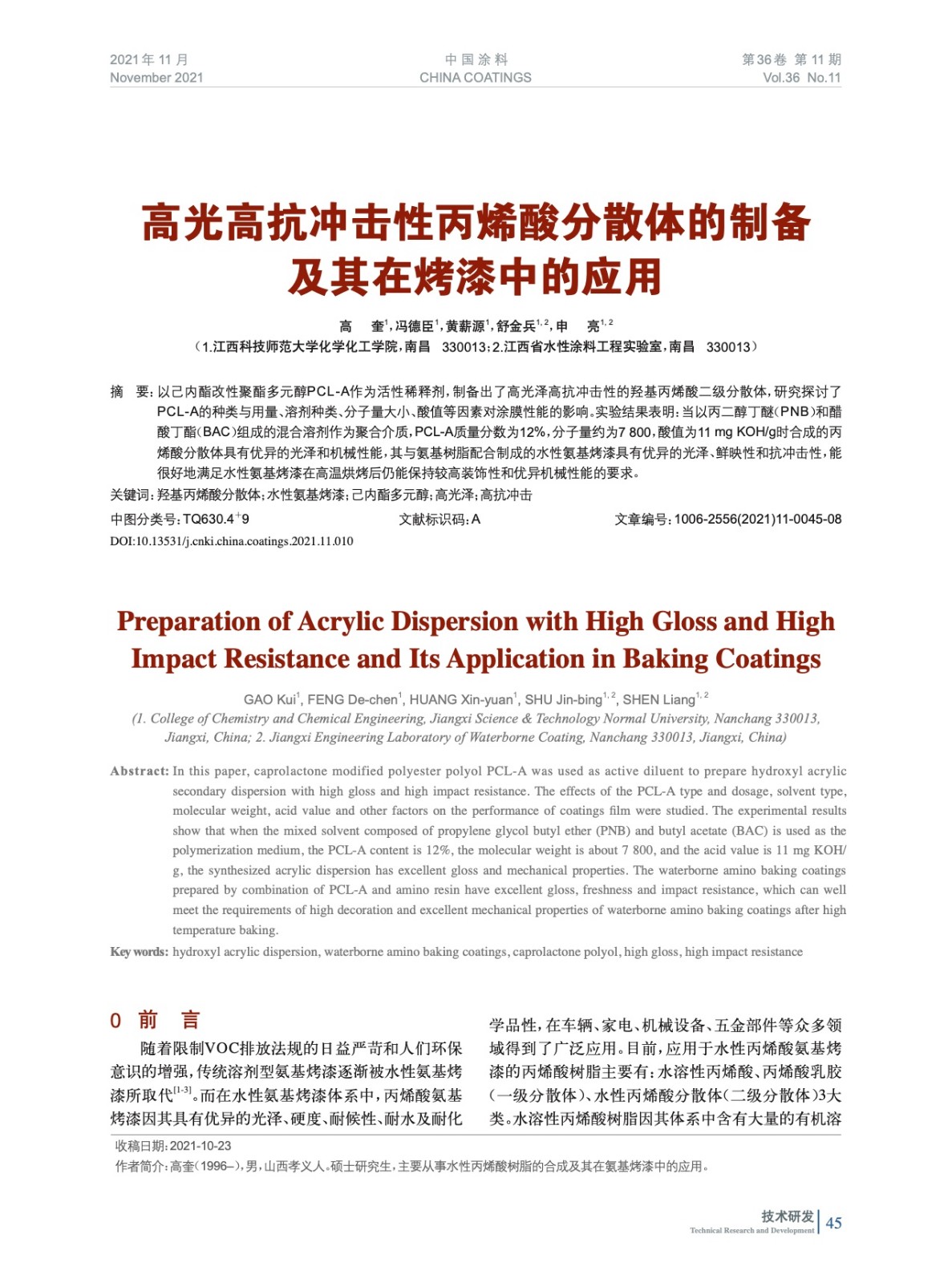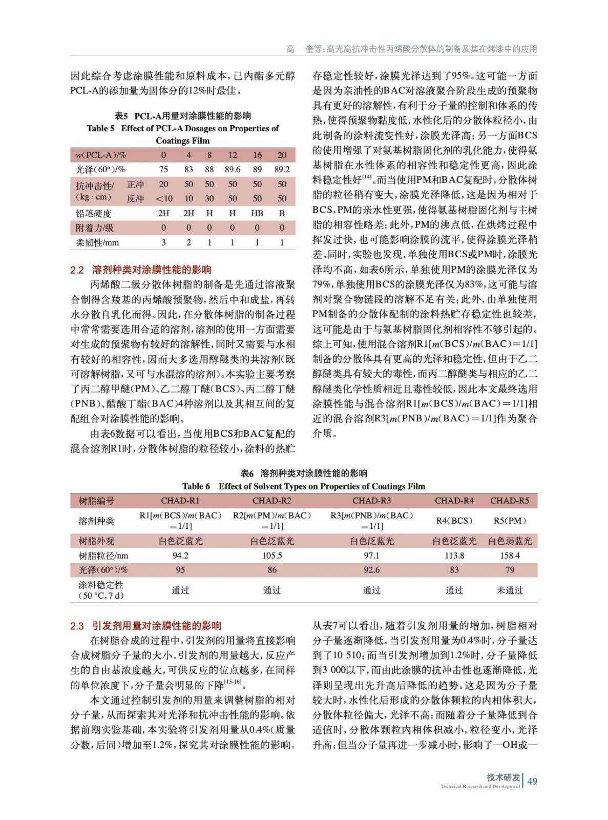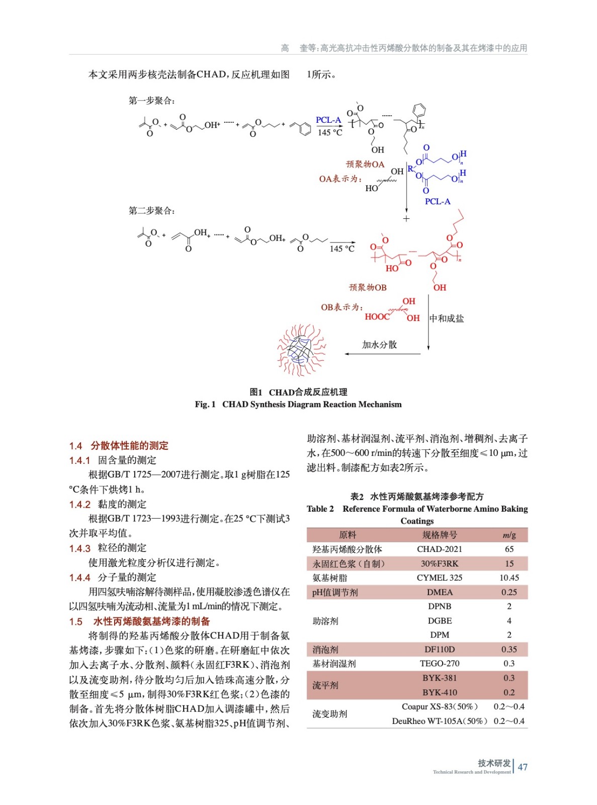 高光高抗沖擊性丙烯酸分散體的制備及其在烤漆中的應(yīng)用