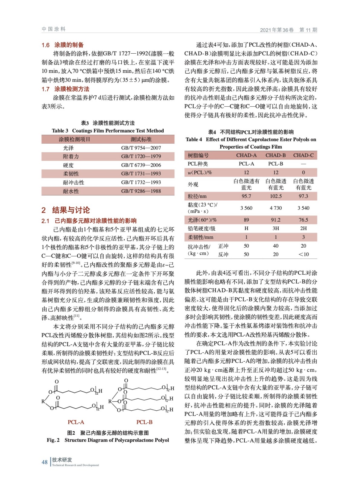 摘要:以己內(nèi)酯改性聚酯多元醇PCL-A作為活性稀釋劑,制備出了高光澤高抗沖擊性的羥基丙烯酸二級(jí)分散體,實(shí)驗(yàn)結(jié)果表明:當(dāng)以丙二醇丁醚和醋酸丁酯組成的混合溶劑作為聚合介質(zhì),PCL-A質(zhì)量分?jǐn)?shù)為12%,分子量約為7800,酸值為11 mgKOH/g時(shí)合成的丙烯酸分散體具有優(yōu)異的光澤和機(jī)械性能,其與氨基樹脂配合制成的水性氨基烤漆具有優(yōu)異的光澤、鮮映性和抗沖擊性,能很好地滿足水性氨基烤漆在高溫烘烤后的性能要求。