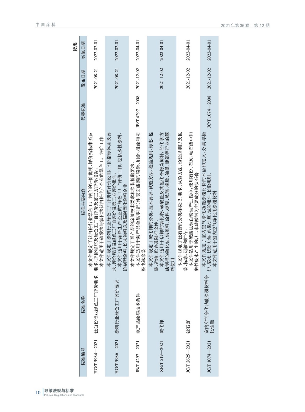 2021年涂料顏料行業主要相關標準匯總