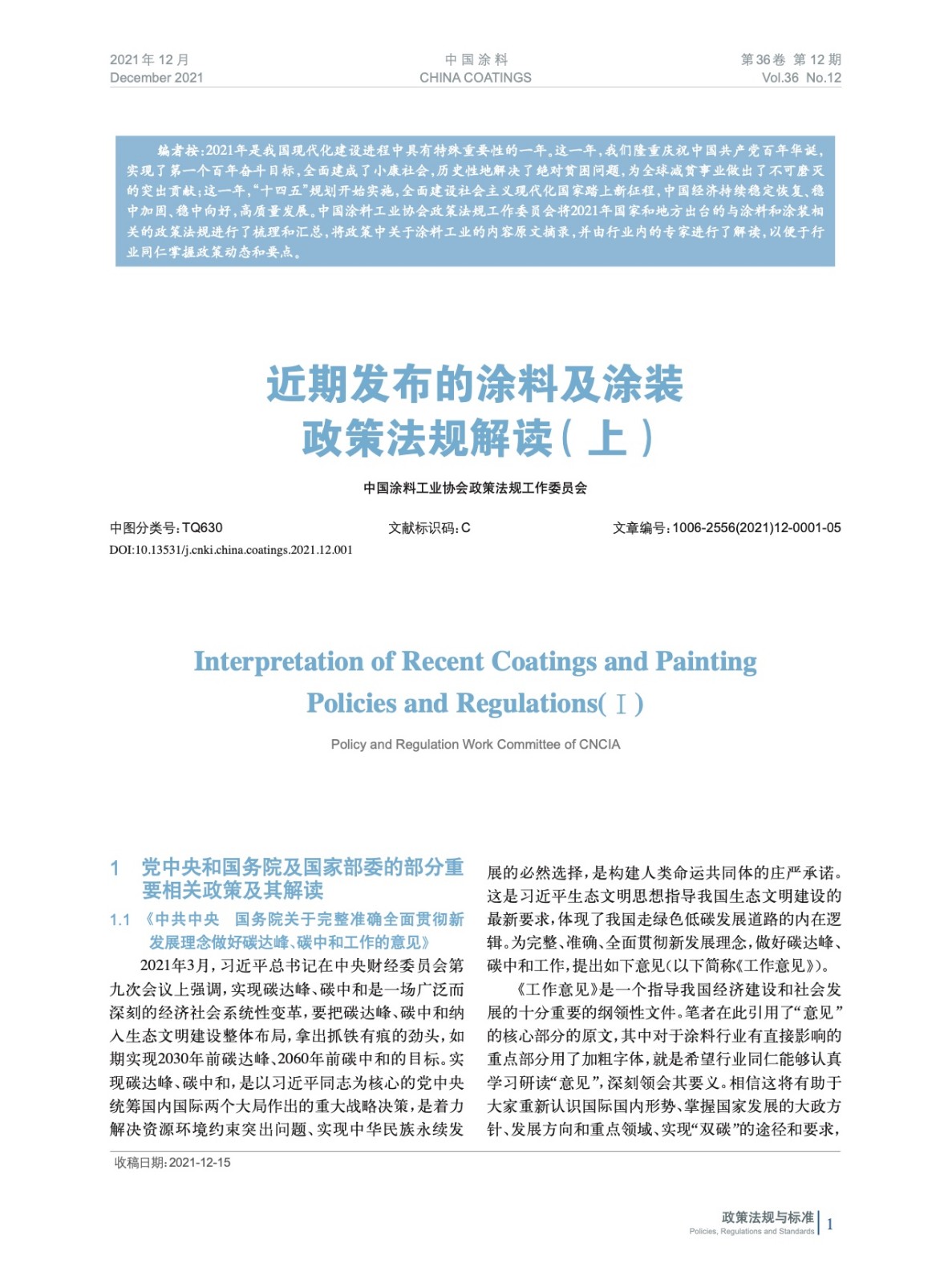 摘要:編者按:2021年是我國現(xiàn)代化建設(shè)進程中具有特殊重要性的一年。中國涂料工業(yè)協(xié)會政策法規(guī)工作委員會將2021年國家和地方出臺的與涂料和涂裝相關(guān)的政策法規(guī)進行了梳理和匯總,將政策中關(guān)于涂料工業(yè)的內(nèi)容原文摘錄,并由行業(yè)內(nèi)的專家進行了解讀,以便于行業(yè)同仁掌握政策動態(tài)和要點。