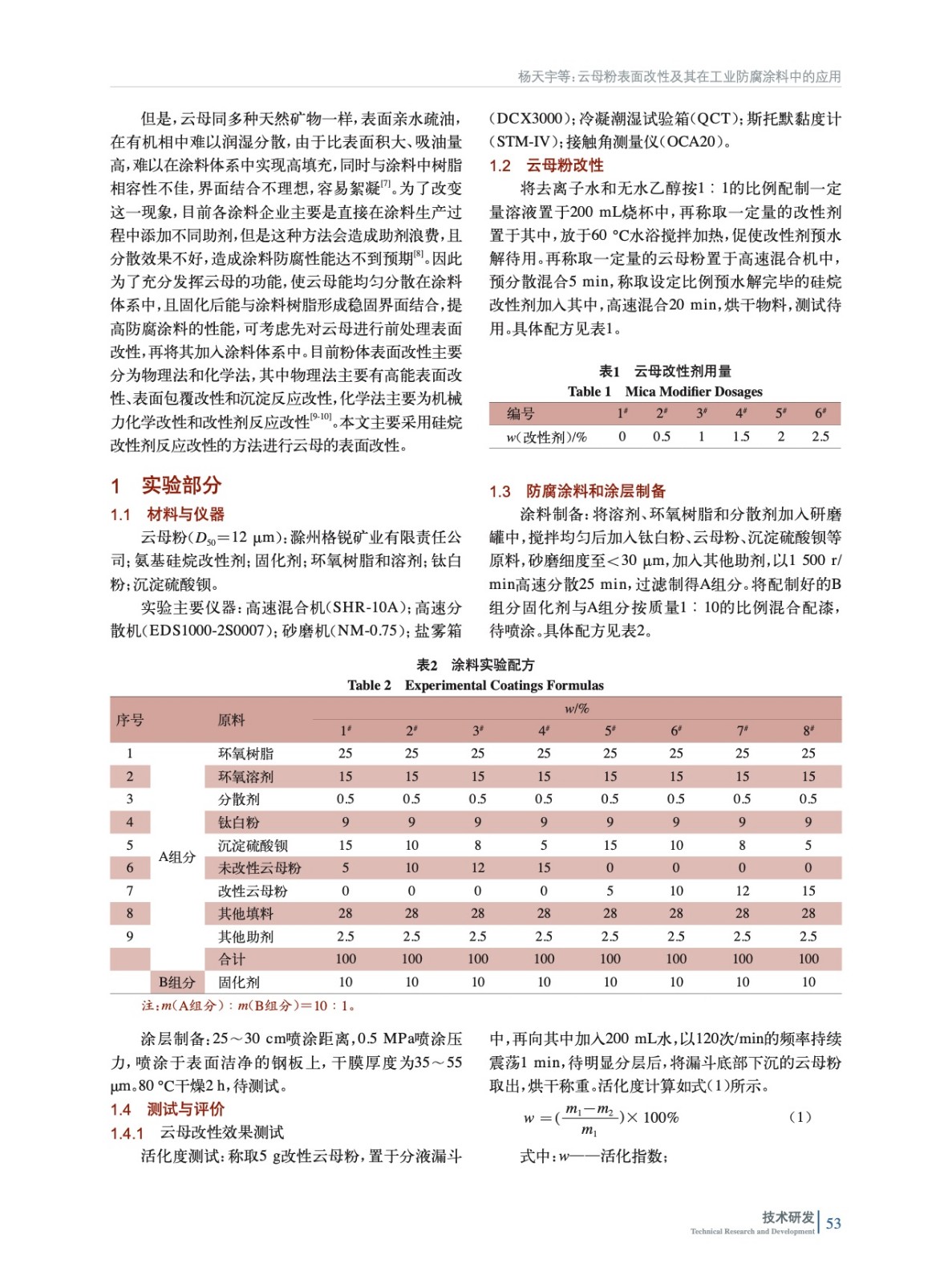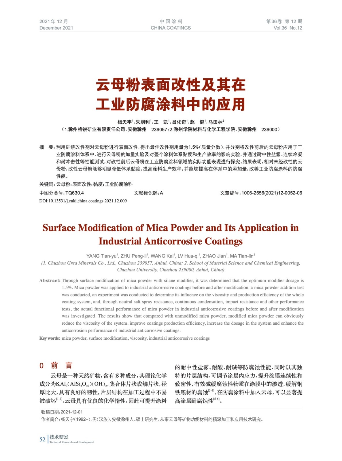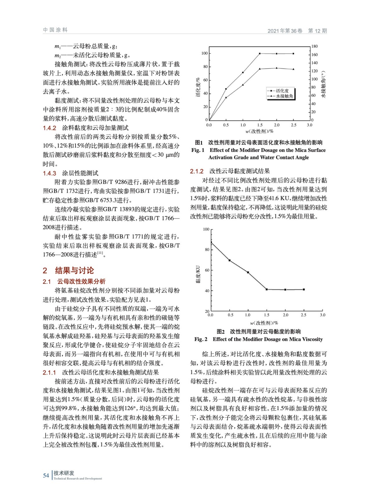 摘要:利用硅烷改性劑對云母粉進行表面改性,得出最佳改性劑質量分數為1.5%,并分別將改性前后的云母粉應用于工業防腐涂料體系中,進行云母粉的加量實驗及對整個涂料體系黏度和生產效率的影響實驗,對改性前后云母粉在工業防腐涂料領域的實際功能表現進行探究。結果表明,相對未經改性的云母粉,改性云母粉能夠明顯降低體系黏度,提高涂料生產效率,改善工業防腐涂料的防腐性能。