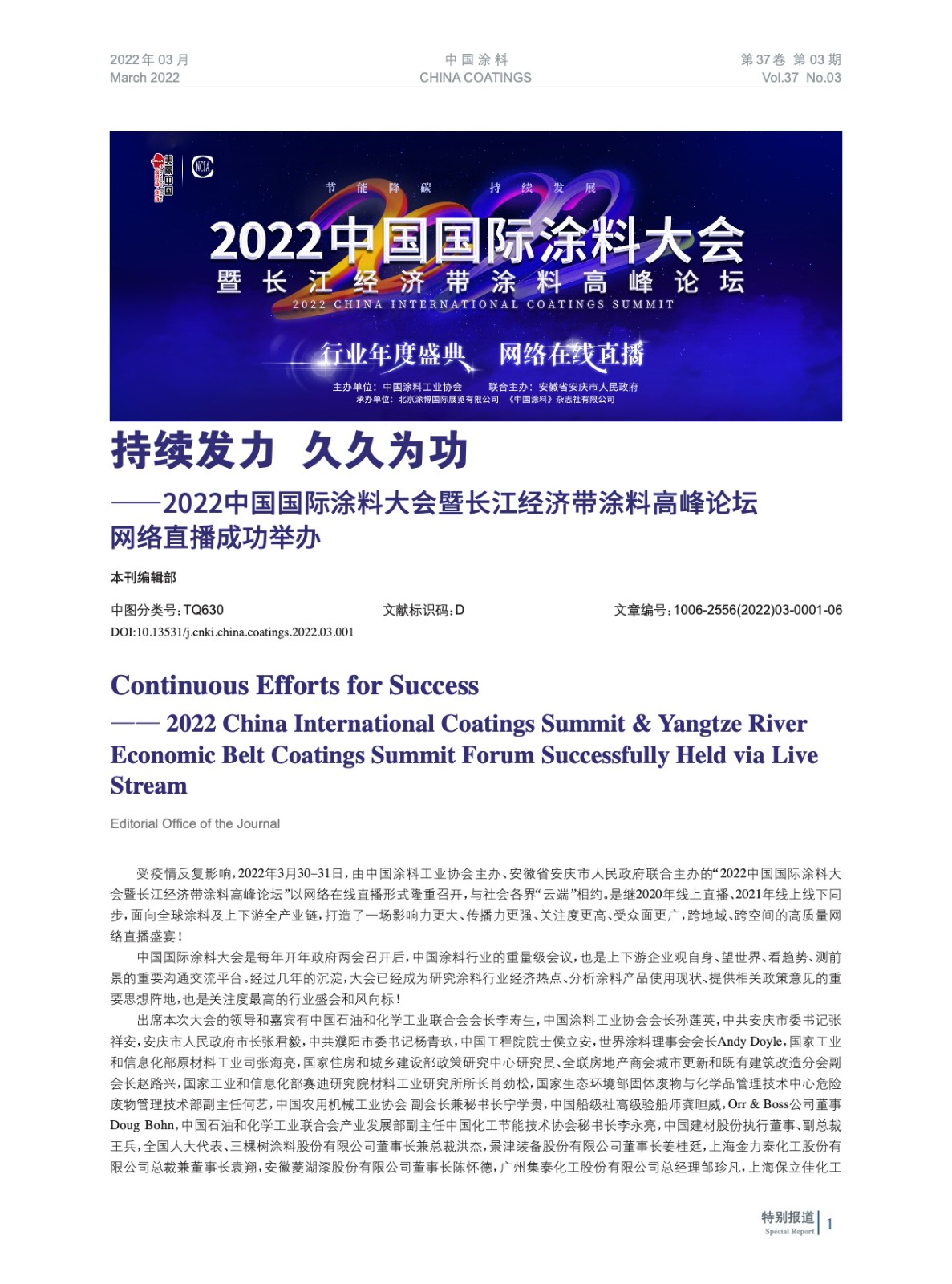持續(xù)發(fā)力 久久為功——2022中國(guó)國(guó)際涂料大會(huì)暨長(zhǎng)江經(jīng)濟(jì)帶涂料高峰論壇網(wǎng)絡(luò)直播成功舉辦