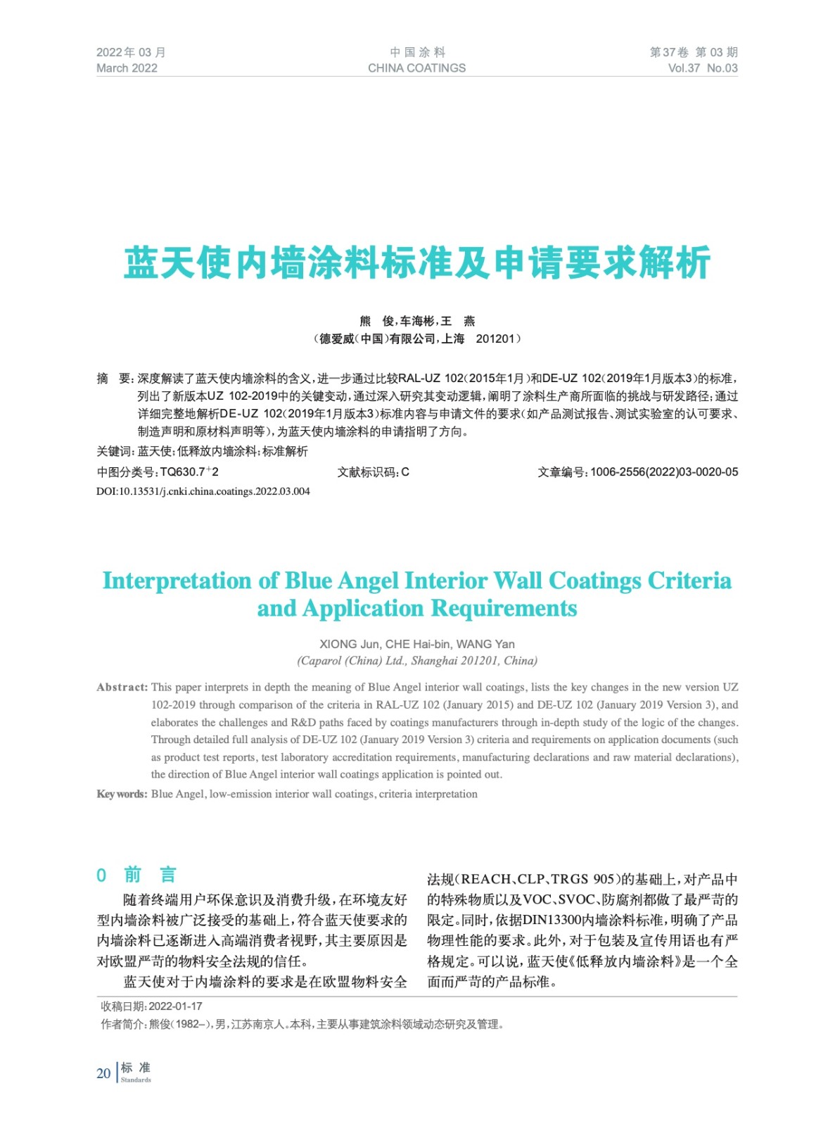 摘要:深度解讀了藍天使內墻涂料的含義,進一步通過比較RAL-UZ 102(2015年1月)和DE-UZ 102(2019年1月版本3)的標準,列出了新版本UZ 102-2019中的關鍵變動,通過深入研究其變動邏輯,闡明了涂料生產商所面臨的挑戰與研發路徑;詳細完整地解析新版標準內容與申請文件的要求,為藍天使內墻涂料的申請指明了方向。