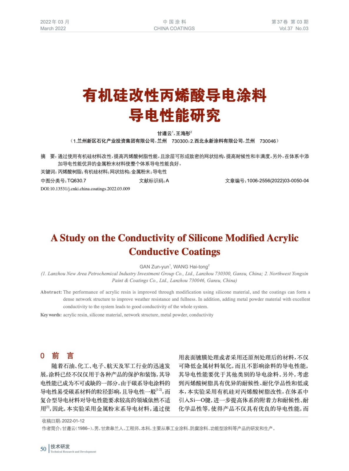 有機(jī)硅改性丙烯酸導(dǎo)電涂料導(dǎo)電性能研究
