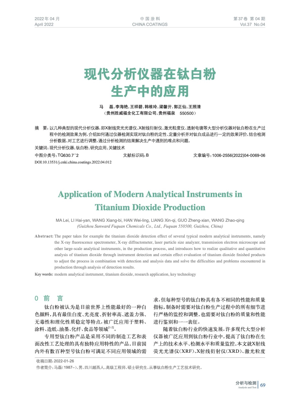 摘要:以幾X射線熒光光譜儀、X射線衍射儀、激光粒度儀、透射電鏡等大型分析儀器對鈦白粉在生產過程中的檢測效果為例,介紹如何通過儀器檢測實現對鈦白粉的定性、定量分析并對鈦白成品進行一定的效果評價,通過分析檢測的結果解決生產中遇到的難點和問題。