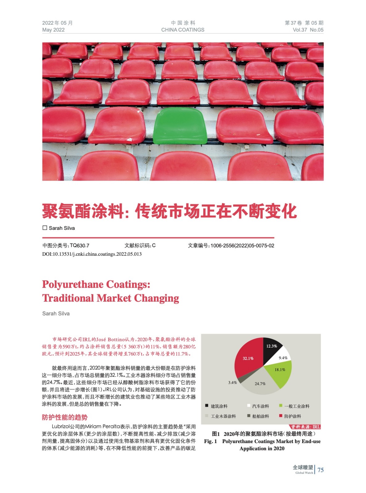 編者按:市場研究公司IRL的José Bottino認為,2020年,聚氨酯涂料的全球銷售量為590萬t,約占涂料銷售總量(5 360萬t)的11%,銷售額為280億歐元。預計到2025年,其全球銷量將增至760萬t,占市場總量的11.7%。