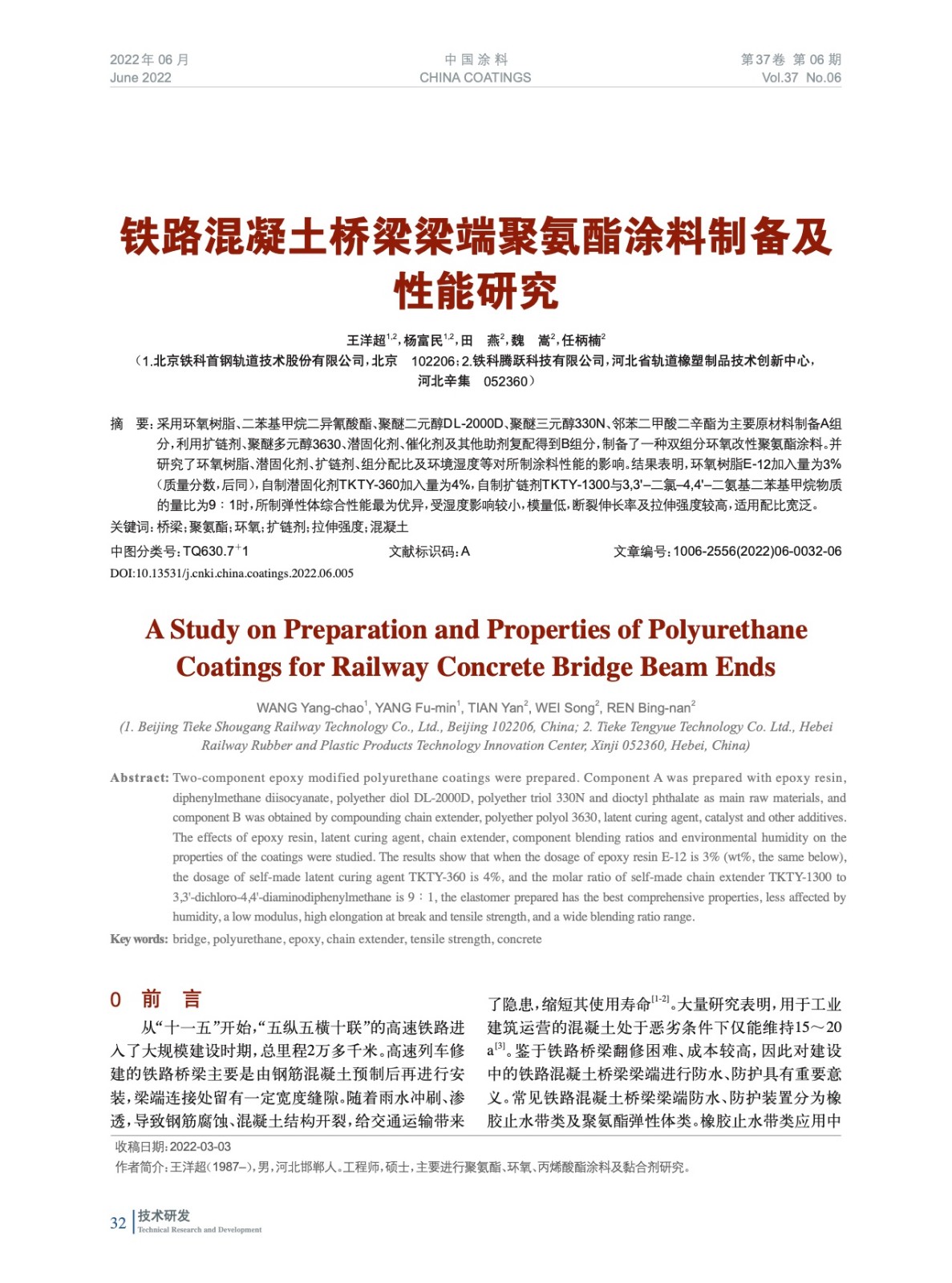 鐵路混凝土橋梁梁端聚氨酯涂料制備及性能研究