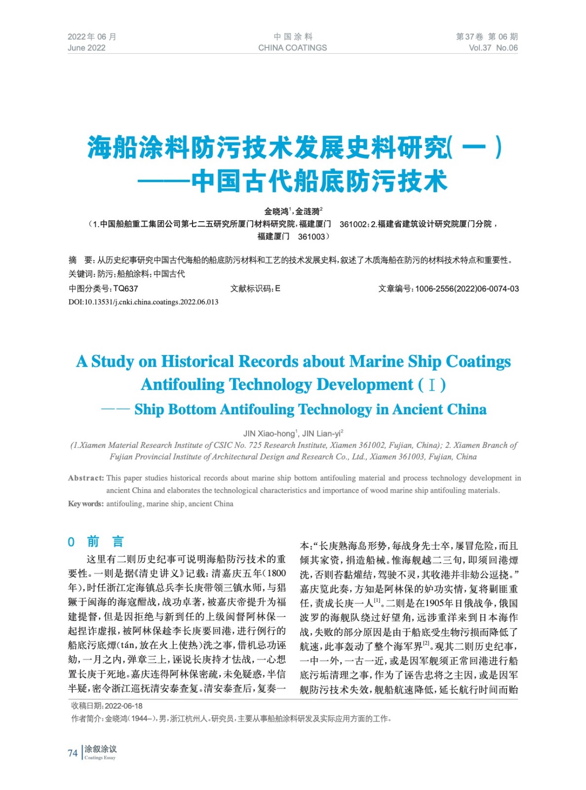 海船涂料防污技術(shù)發(fā)展史料研究(一)——中國古代船底防污技術(shù)