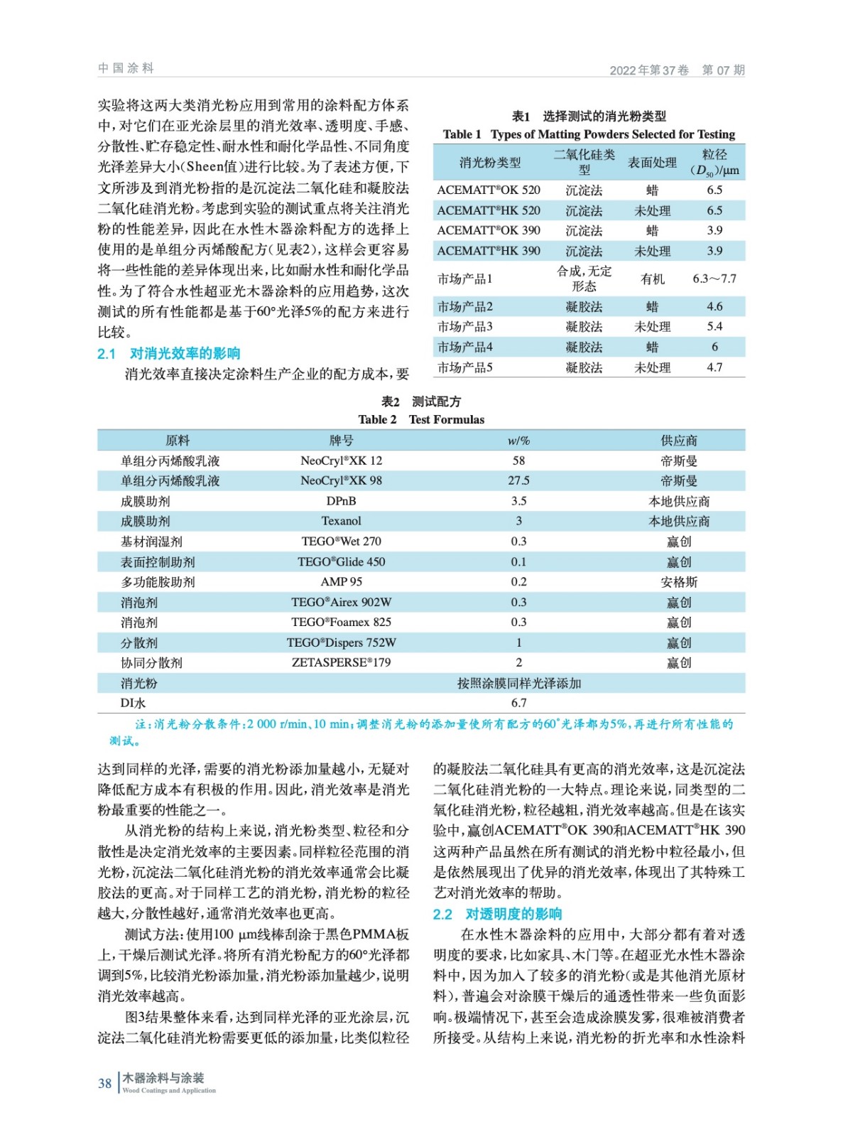 水性木器涂料中不同類(lèi)型消光粉的研究
