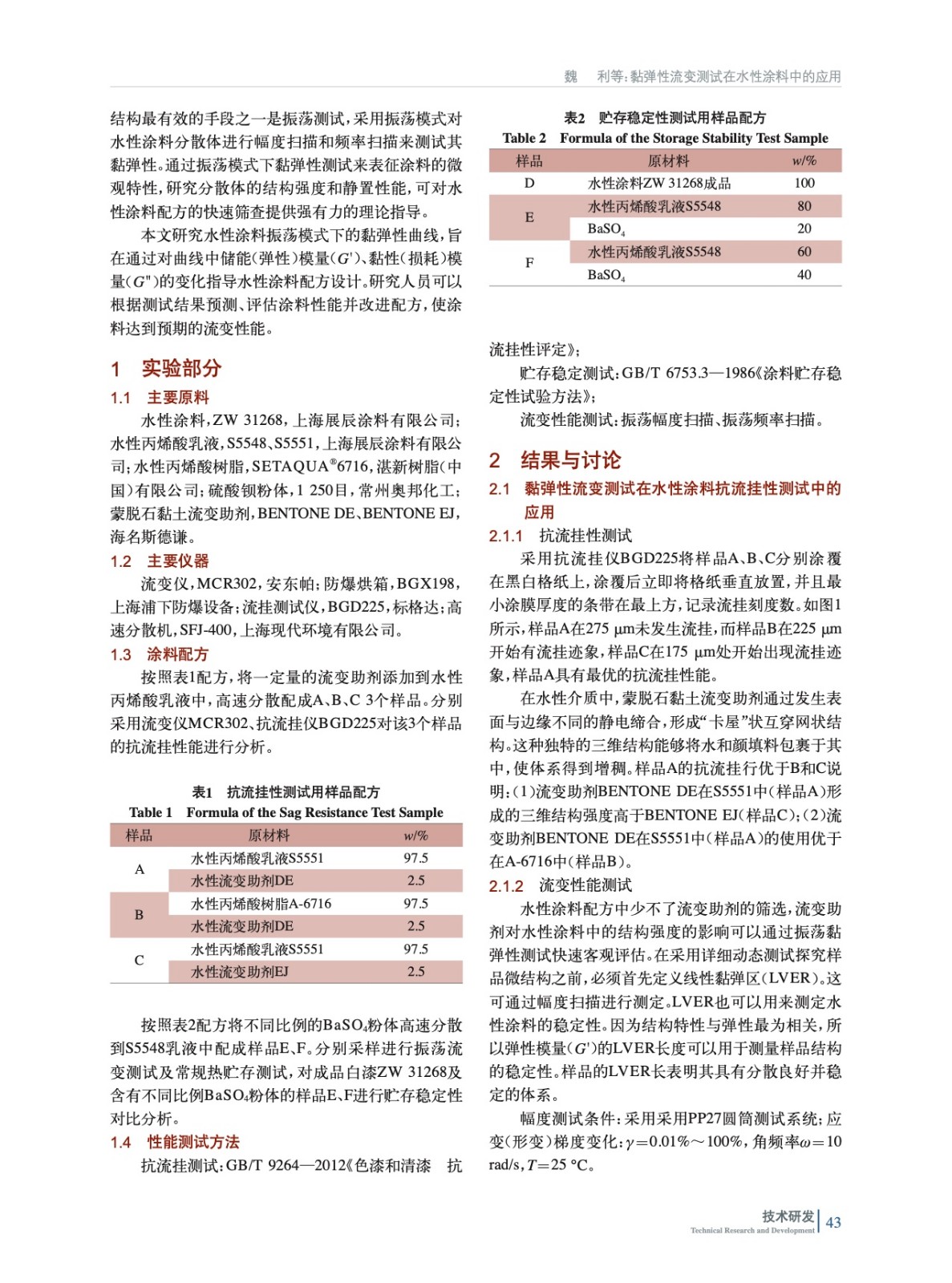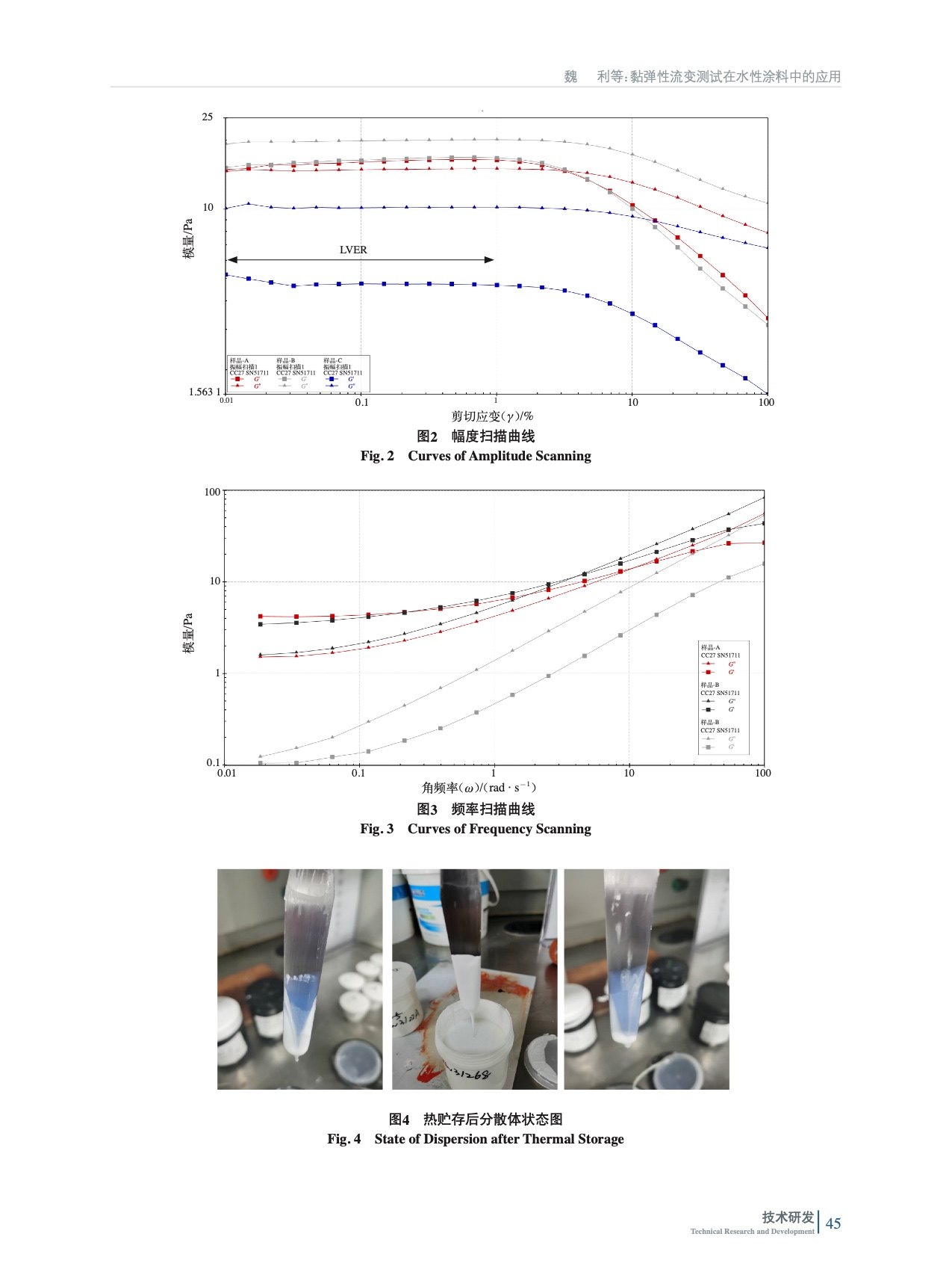 采用振蕩模式下的幅度掃描和頻率掃描對水性涂料的微觀結構進行評估,通過對黏彈性曲線的研究,探討了儲能(彈性)模量(G')、黏性(損耗)模量(G")變化對涂料的貯存穩定性、抗流掛性的影響。