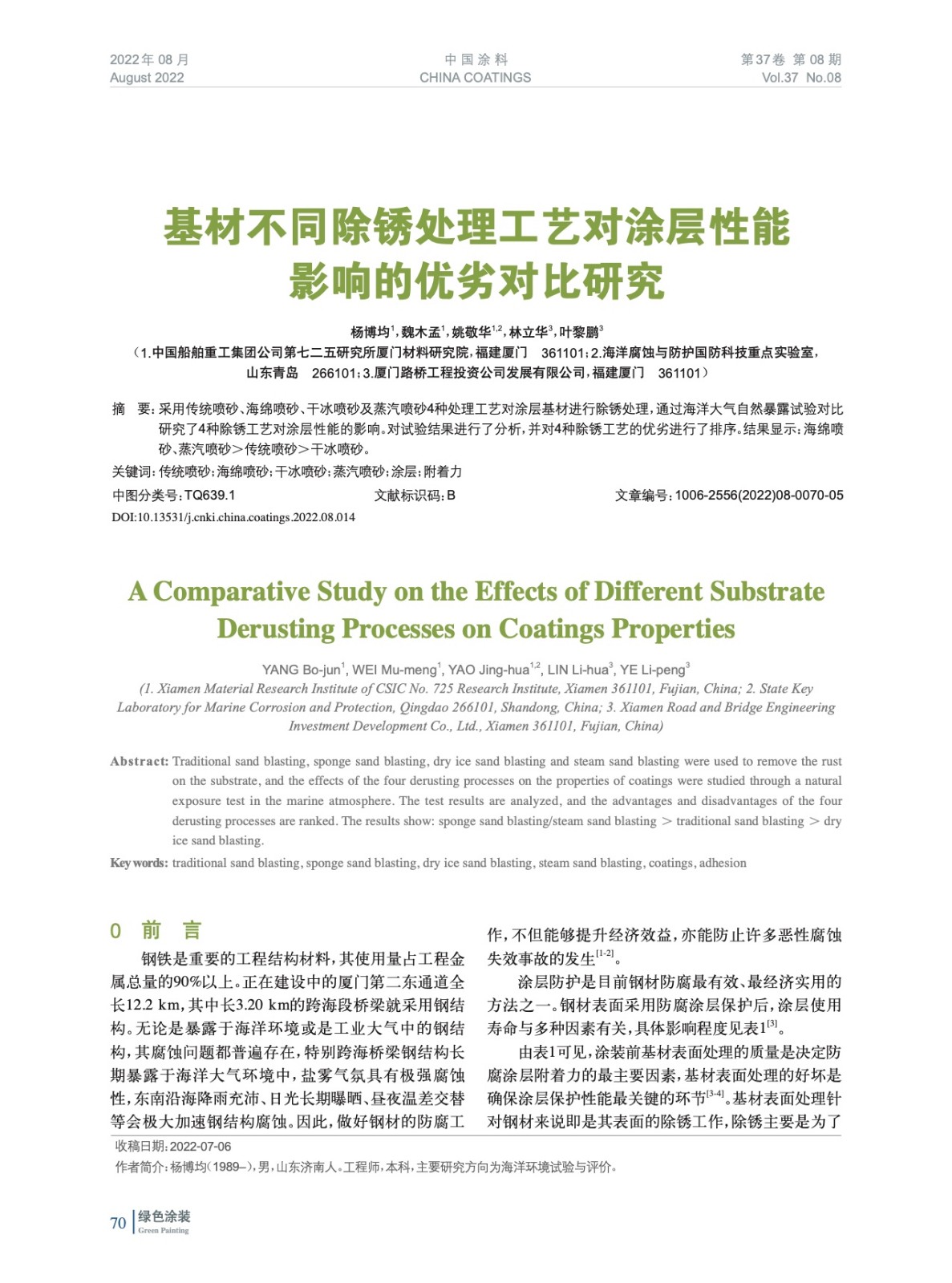 基材不同除銹處理工藝對涂層性能影響的優劣對比研究