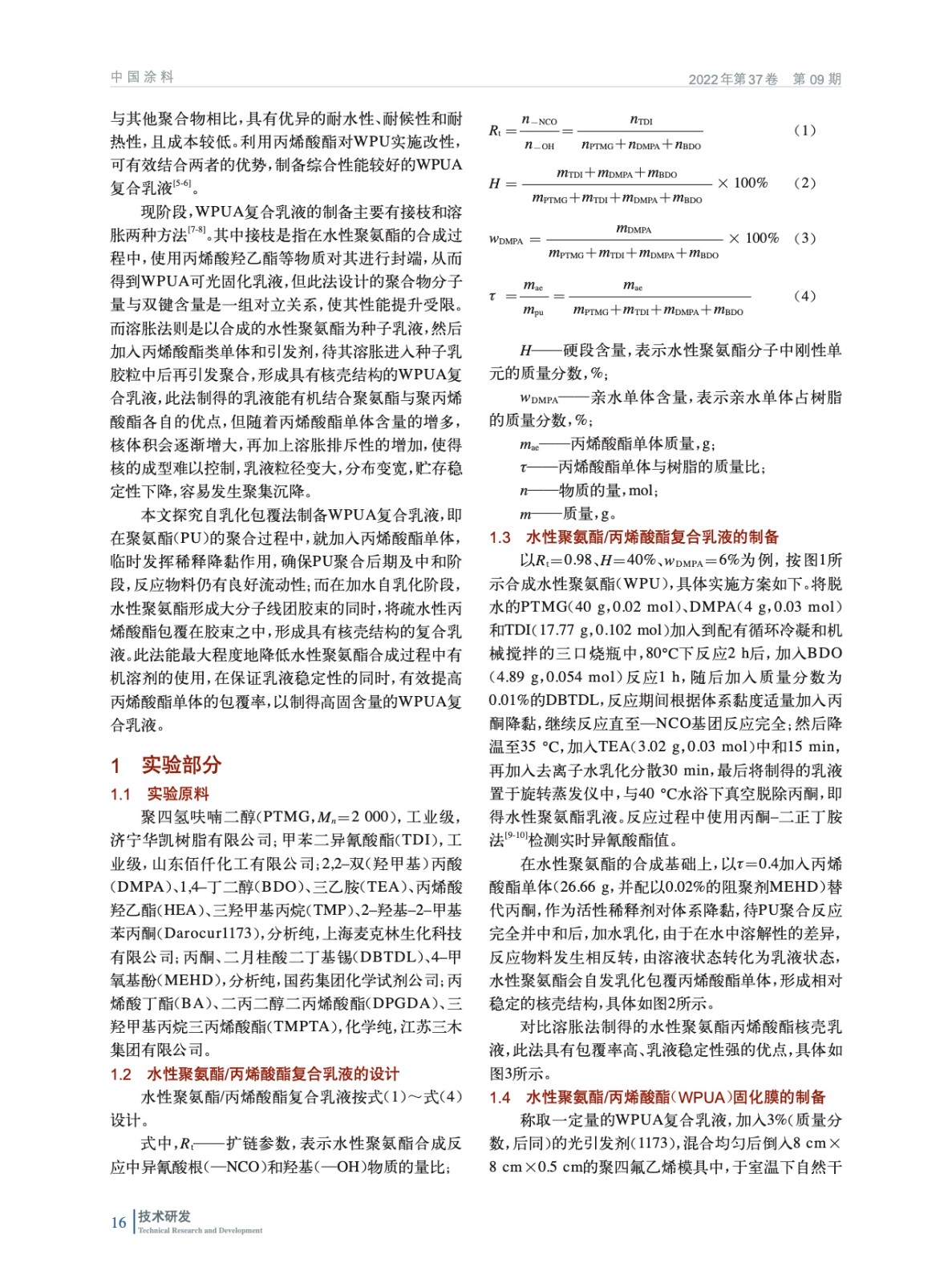 水性聚氨酯/丙烯酸酯復(fù)合乳液的制備及性能研究