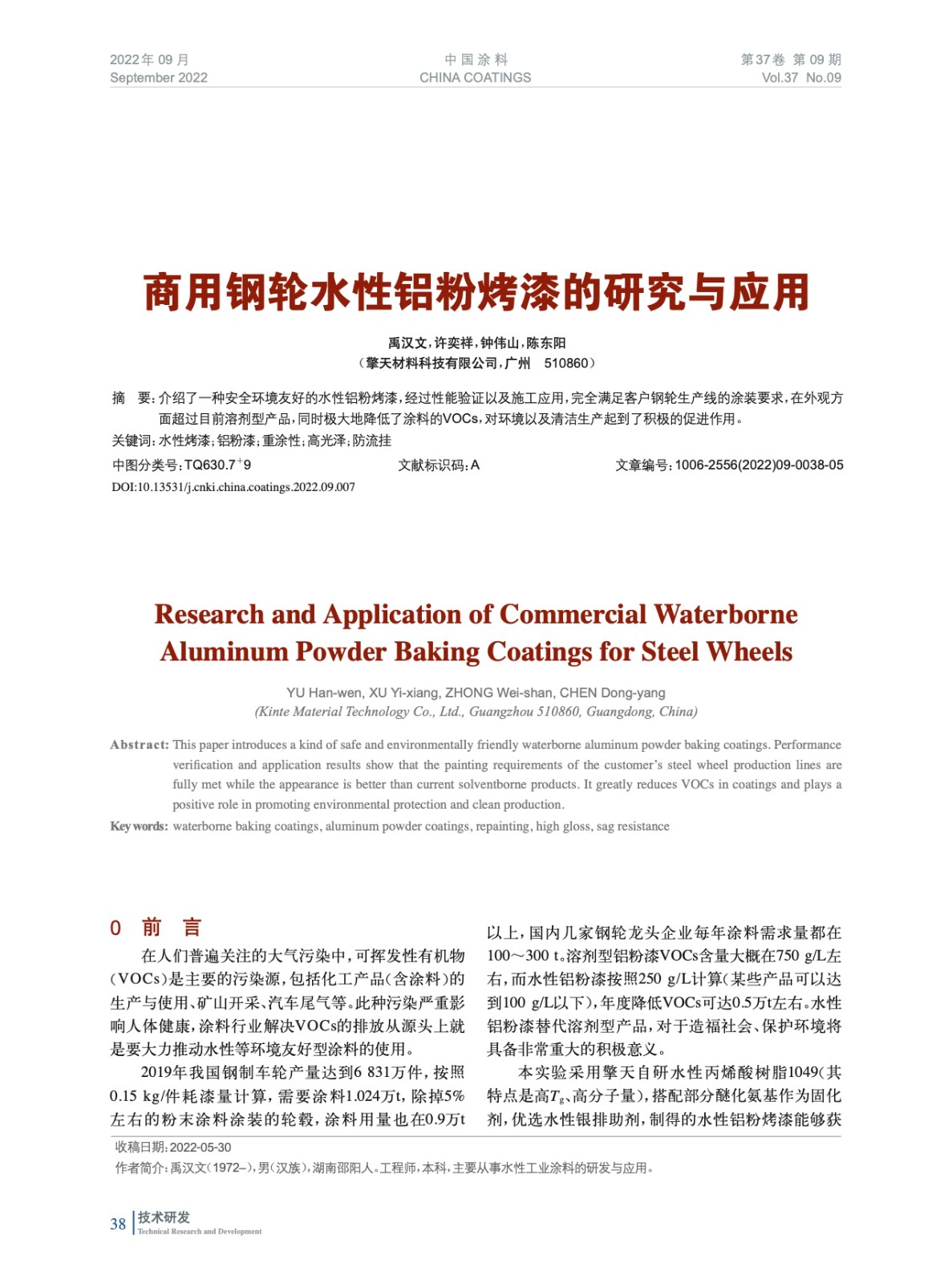 本文系作者@禹漢文,許奕祥,鐘偉山,陳東陽 授權中國涂料網發表,并經中國涂料網編輯,未經允許不得轉載,如需轉載請聯系chinacoatingnet@vip.163.com