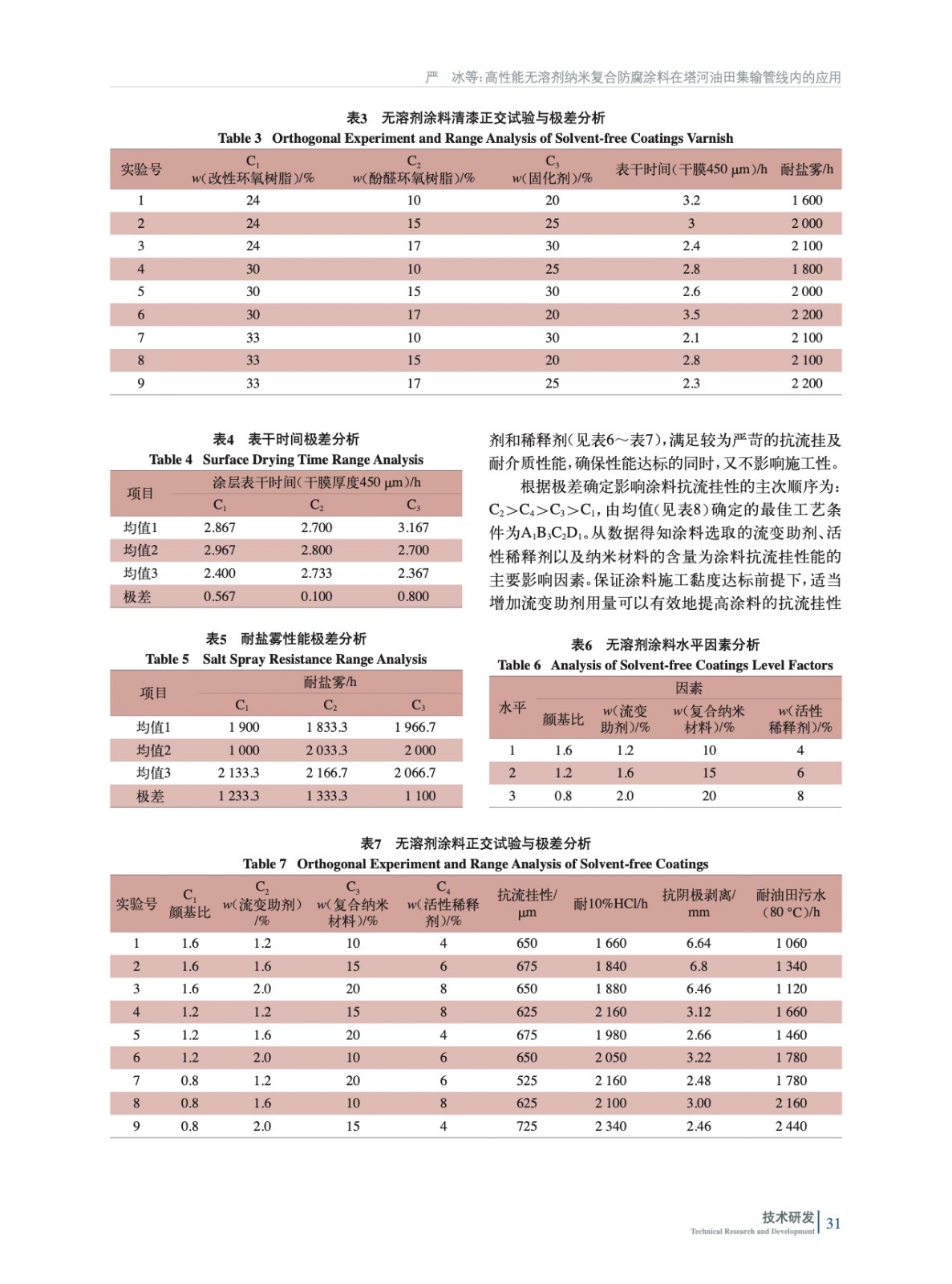摘要:介紹了針對塔河油田集輸管線采出液高CO2、高H2S、高H2O、高Cl-、高礦化度、低pH值的“五高一低”高腐蝕性及集輸工況高溫、高壓的特點,采用正交試驗,根據極差數據離散分析開發出一款高性能無溶劑納米防腐涂料,專門適用于管道內防腐,各項性能遠高于油田行業標準。