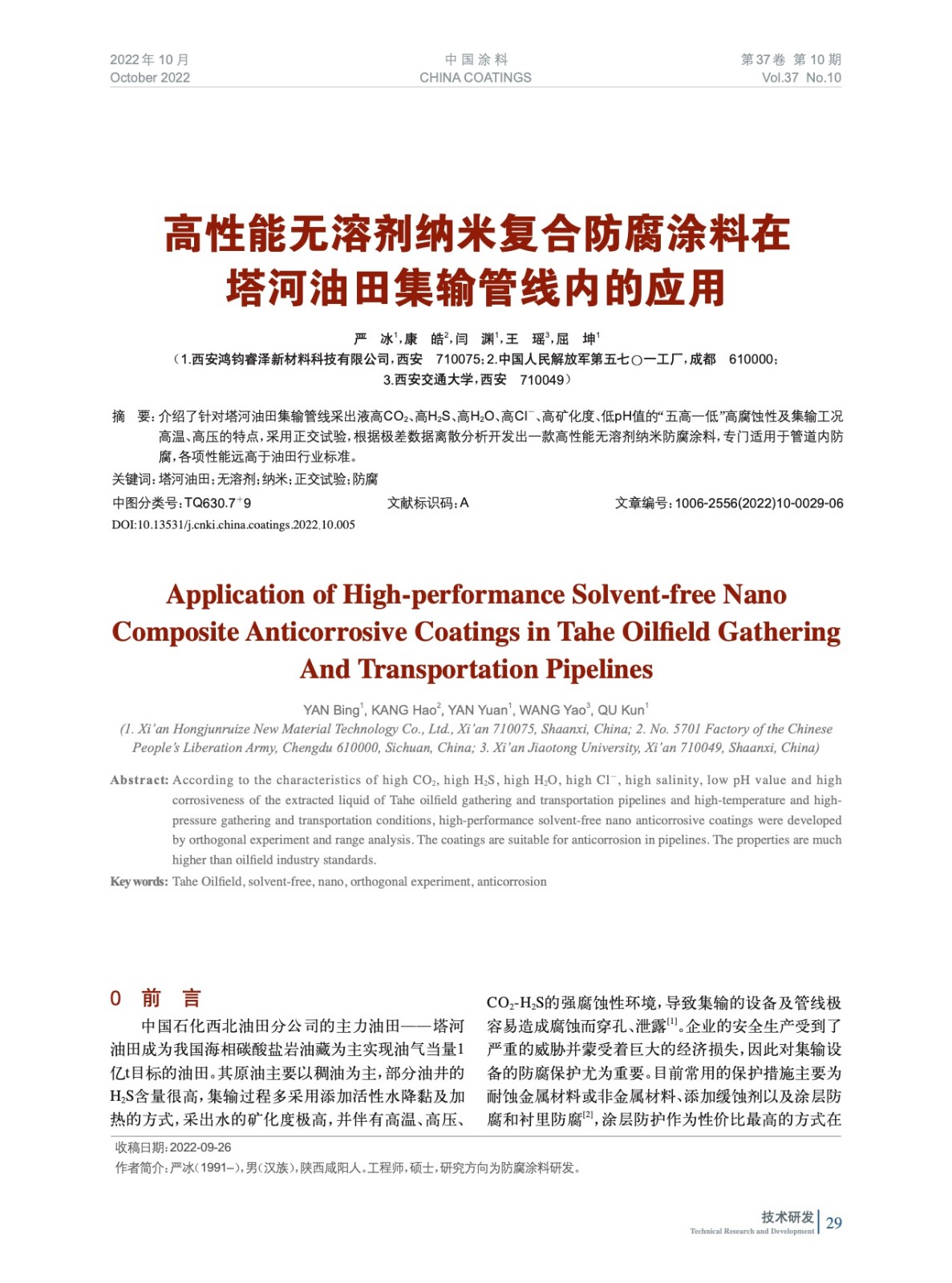 高性能無溶劑納米復合防腐涂料在塔河油田集輸管線內的應用