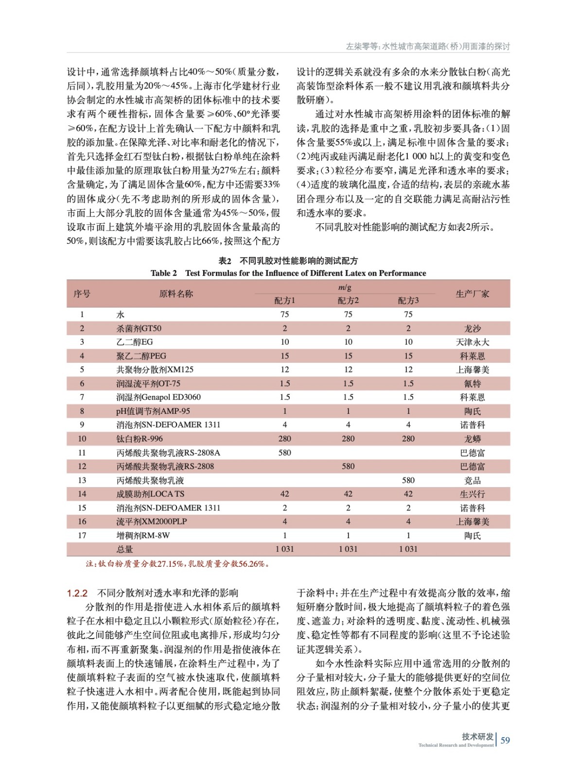 摘要:著重討論乳膠和分散劑對(duì)水性城市高架橋梁涂料的影響,在保證高固體含量、高光澤、低透水率的情況下,具有更突出的耐沾污性,從而充分保證了涂裝好的水性城市高架橋梁涂料持久靚麗。同時(shí)在產(chǎn)品應(yīng)用開(kāi)發(fā)中其VOC較低,極大減少VOC對(duì)環(huán)境的影響和對(duì)施工者人體的傷害。
