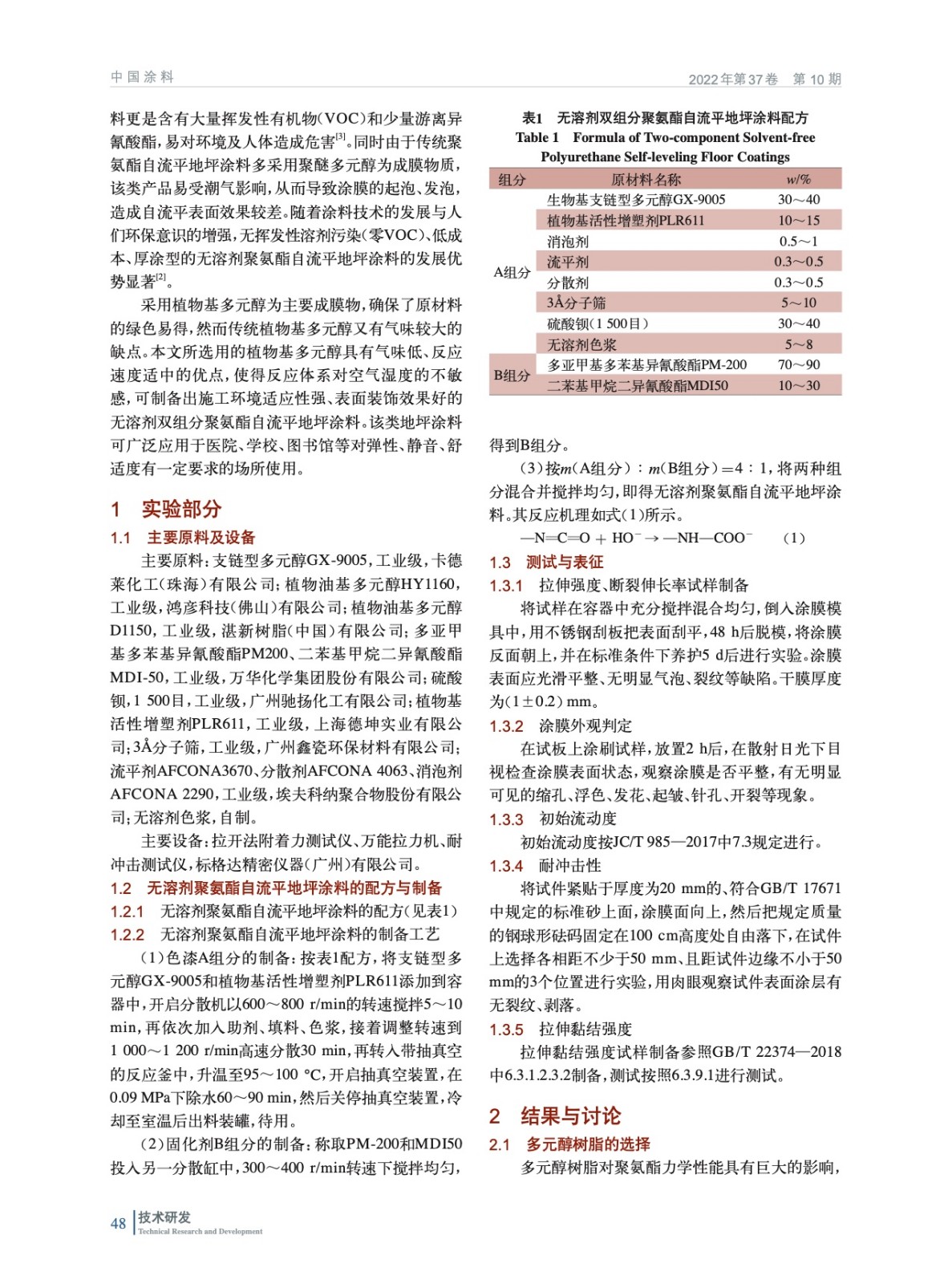 無溶劑雙組分聚氨酯自流平地坪涂料的研制