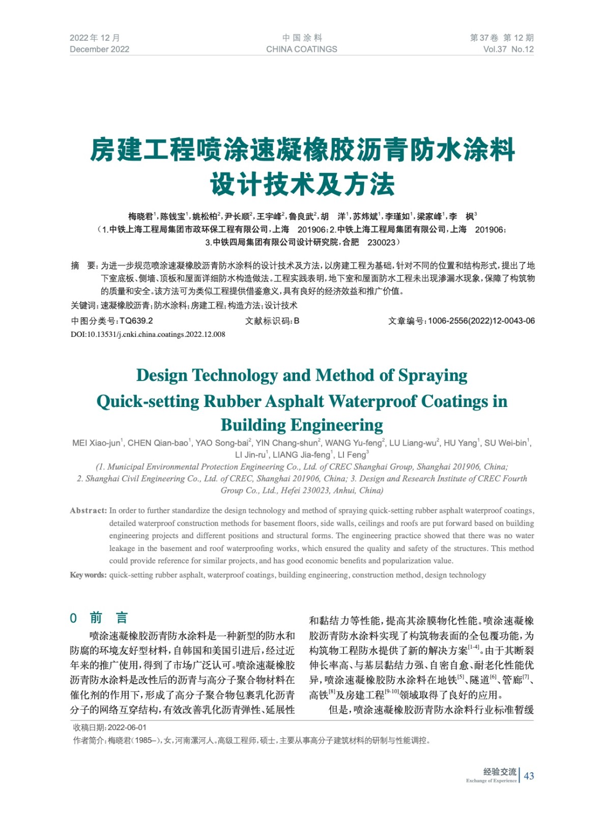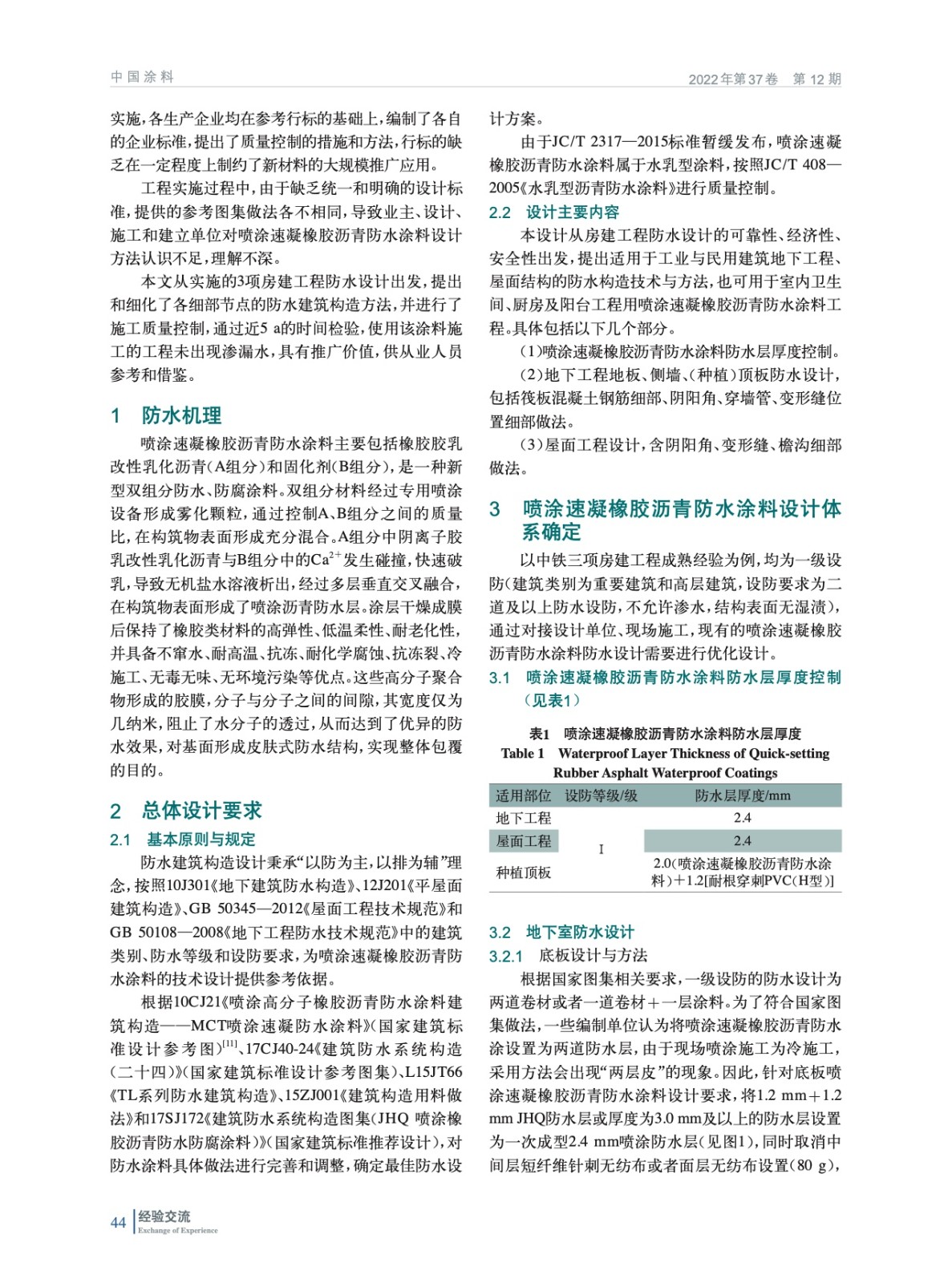 房建工程噴涂速凝橡膠瀝青防水涂料設計技術及方法
