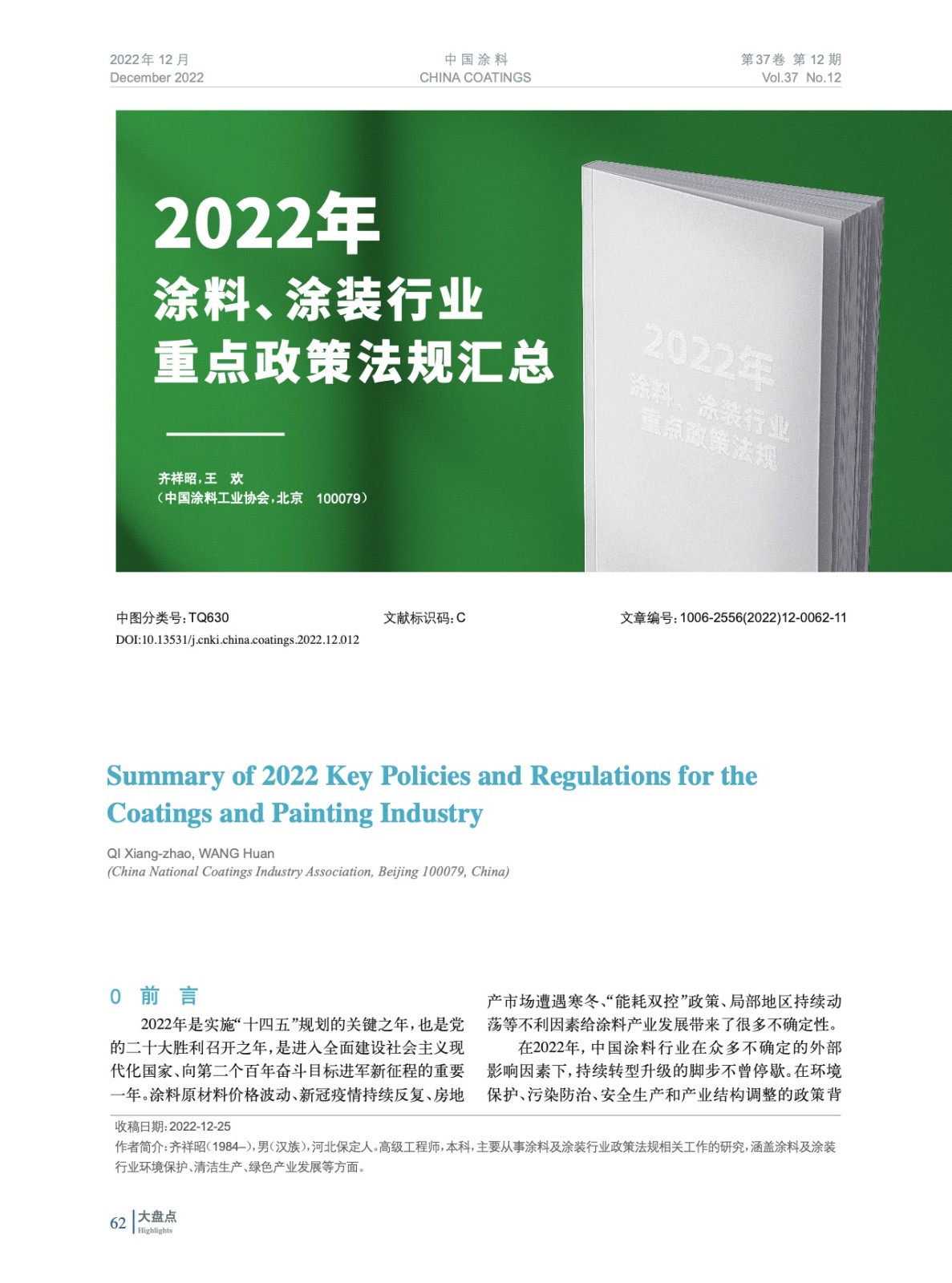 摘要:編者按:在環(huán)境保護(hù)、污染防治、安全生產(chǎn)和產(chǎn)業(yè)結(jié)構(gòu)調(diào)整的政策背景下,2022年國家出臺(tái)了多項(xiàng)政策法規(guī),特別是在涂料、涂裝領(lǐng)域,《“十四五”危險(xiǎn)化學(xué)品安全生產(chǎn)規(guī)劃方案》、《深入打好重污染天氣消除、臭氧污染防治和柴油貨車污染治理攻堅(jiān)戰(zhàn)行動(dòng)方案》、《環(huán)境監(jiān)管重點(diǎn)單位名錄管理辦法》、碳達(dá)峰管理文件、綠色消費(fèi)、職業(yè)分類、含鉛涂料、綠色制造體系和認(rèn)證評(píng)價(jià)等重點(diǎn)政策法規(guī)將對(duì)行業(yè)未來高質(zhì)量發(fā)展起到重要的作用。
