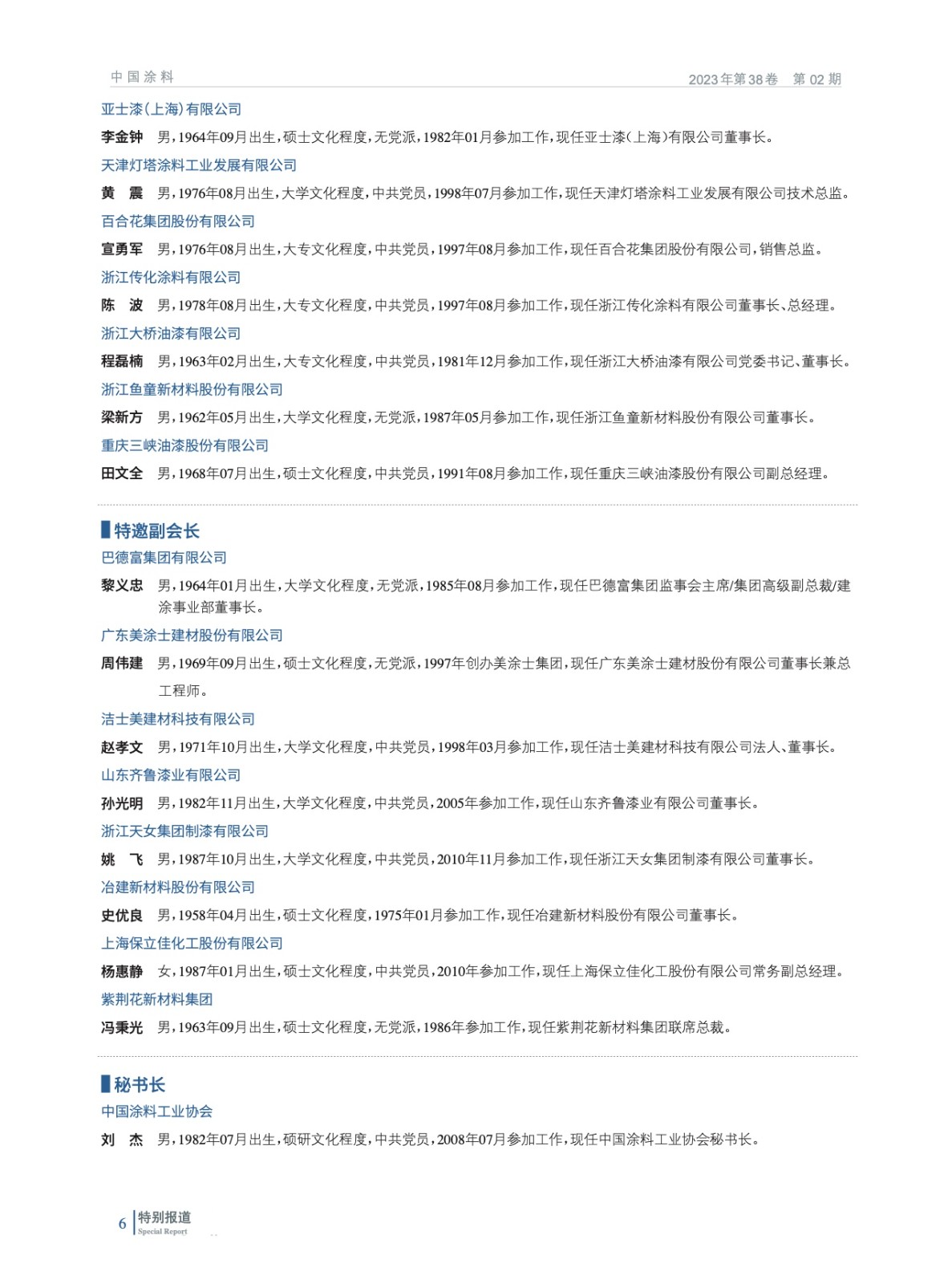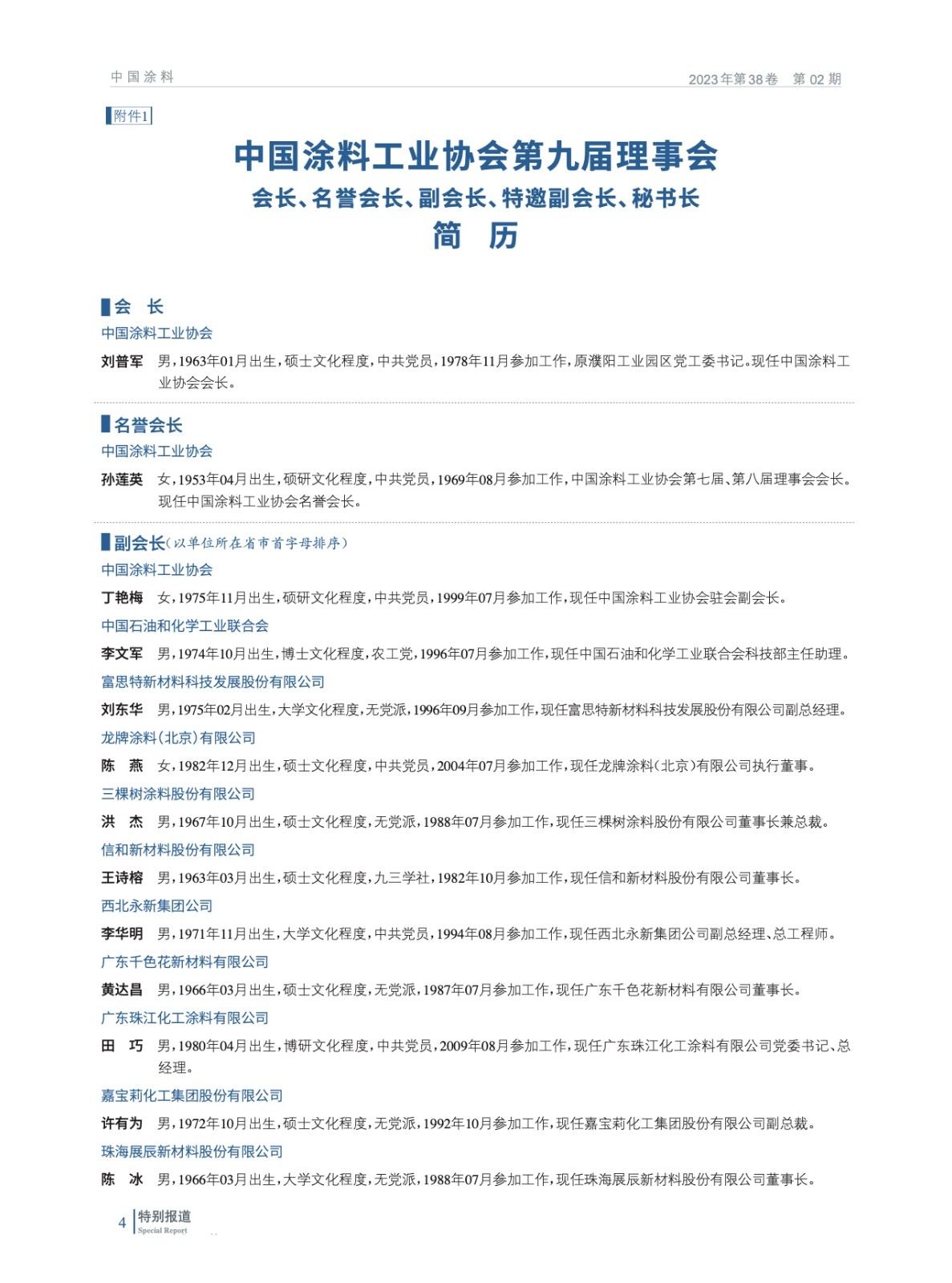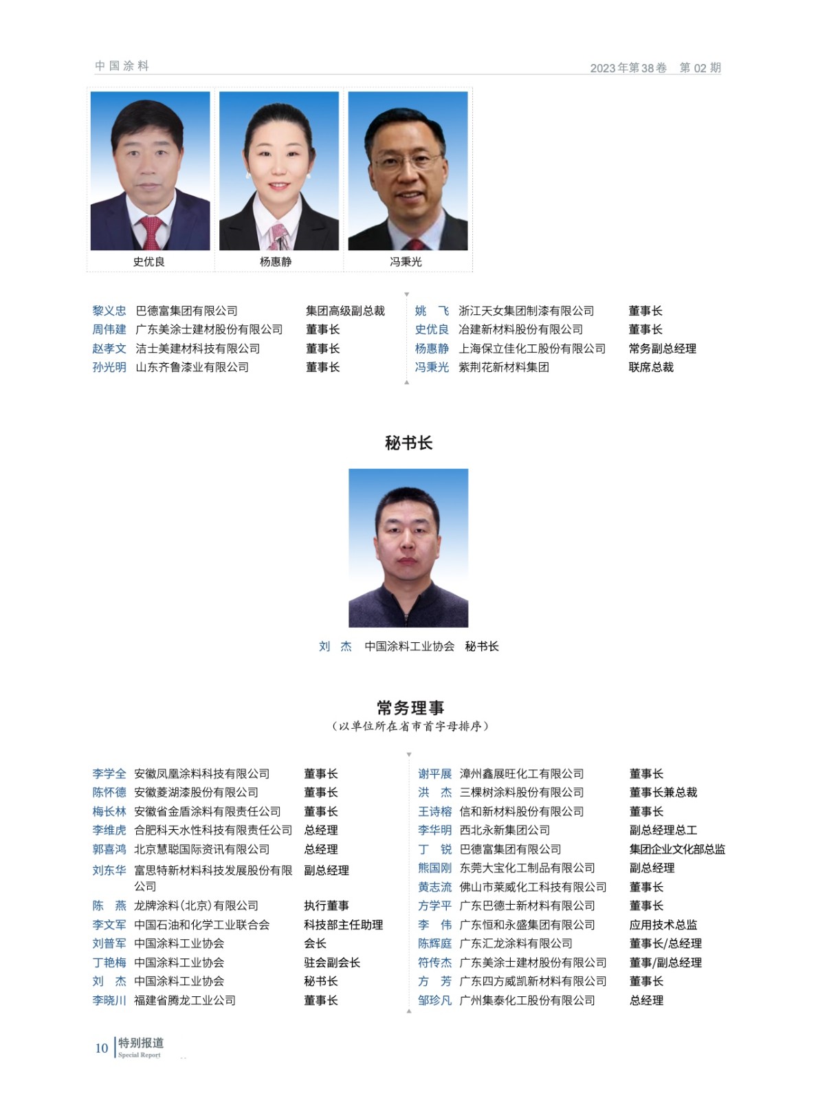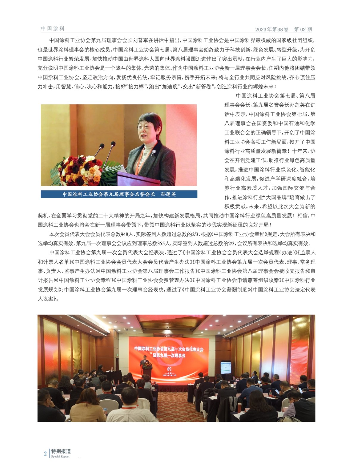 摘要:2023年2月13日,中國涂料工業協會第九屆一次會員代表大會暨第九屆一次理事會在北京以“線下+線上”形式圓滿召開。會議在國務院國有資產管理委員會與中國石油和化學工業聯合會的指導下進行,選舉產生了中國涂料工業協會新一屆理事會,劉普軍同志當選為中國涂料工業協會第九屆理事會會長,孫蓮英同志當選為第九屆理事會名譽會長。丁艷梅(駐會)等37名同志當選為第九屆理事會副會長,黎義忠等8位同志當選為第九屆理事會特邀副會長,劉杰同志當選為第九屆理事會秘書長。